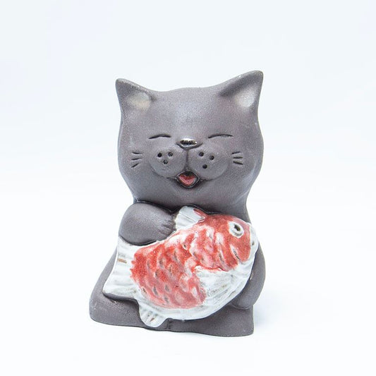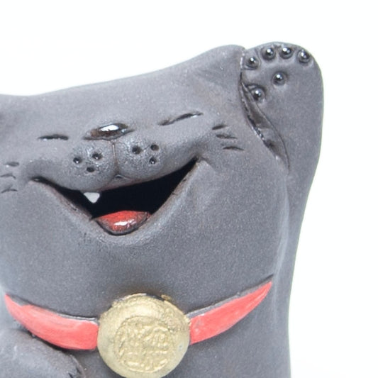 陶藝家 布施 猫 喜歡以貓為製作人形中心,製作出具有自己特色的日本緣起物。 每一只作品的樣子都充滿反差感,有一點奸,卻散發出一種可愛。