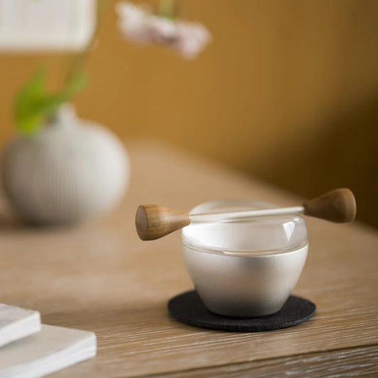 美妙的物料配搭以經過鍛造的真鍮,配上日本製磁器上蓋,剛柔平衡而帶點優雅。
