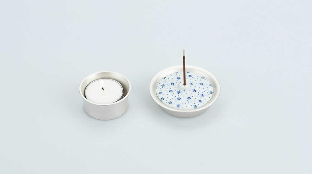 線香與塔香兩用磁器上蓋印上日本傳統紋柄,一邊可以安插線香,反轉後可安座塔香,一座兩用。