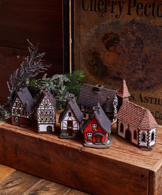 Green Window Cottage-European Cottage Ceramic Christmas Candlestick (Made in Lithuania)