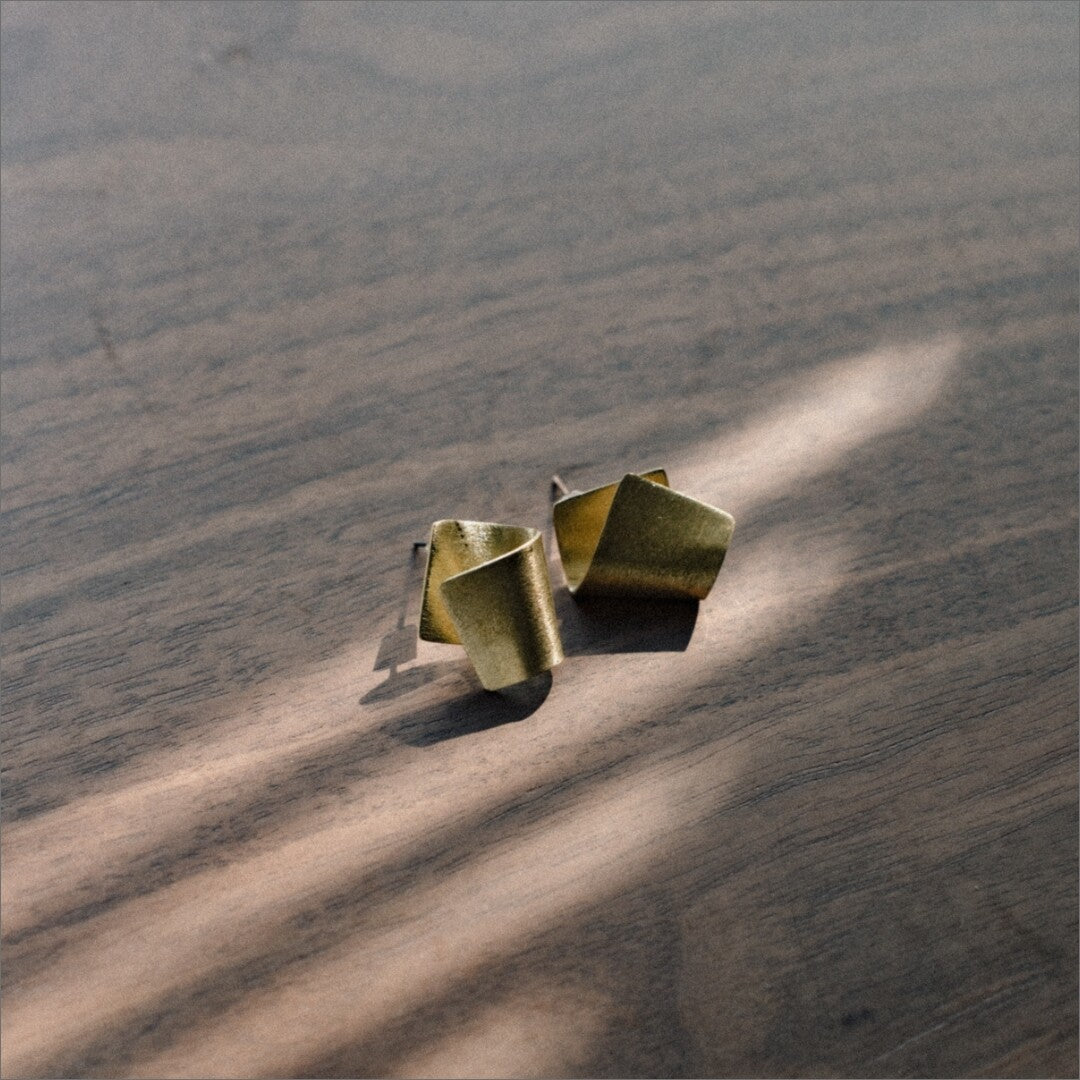 這款耳環的設計靈感來自對半分開的折疊造型。