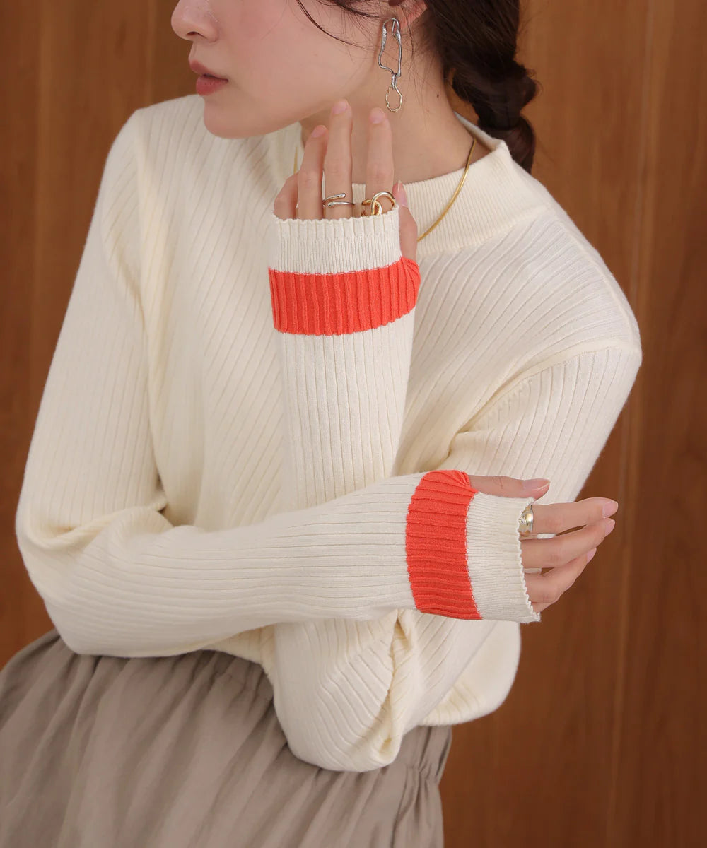 羅紋針織衫,袖口處飾以精緻的撞色線條,展現成熟女性的趣味性。簡約時尚的拇指孔設計,讓您從指尖也能享受時尚。領口設計既展現優雅氣質,貼合身形,凸顯女性柔美曲線。基本款設計,輕鬆駕馭各種場合,無論工作或休閒,都能完美展現您的時尚品味。