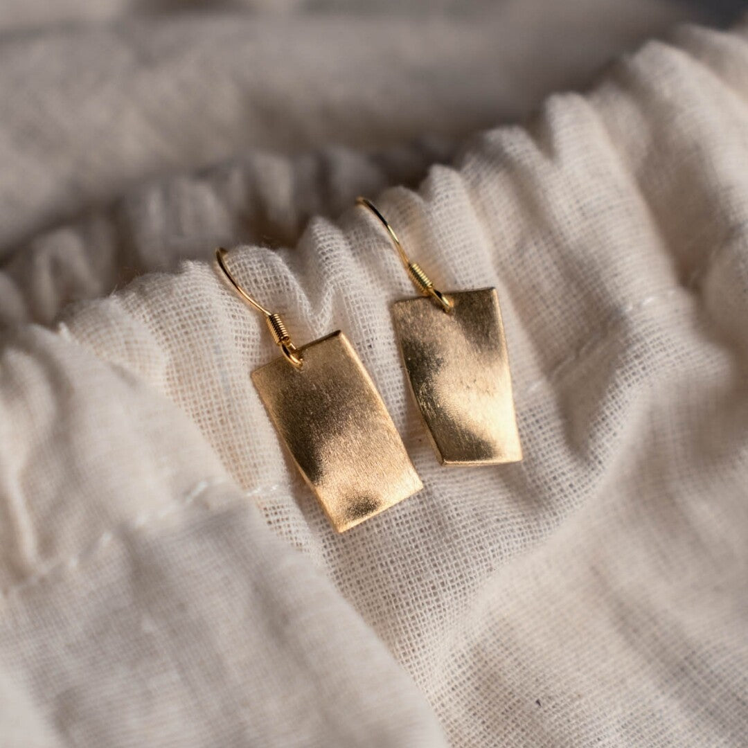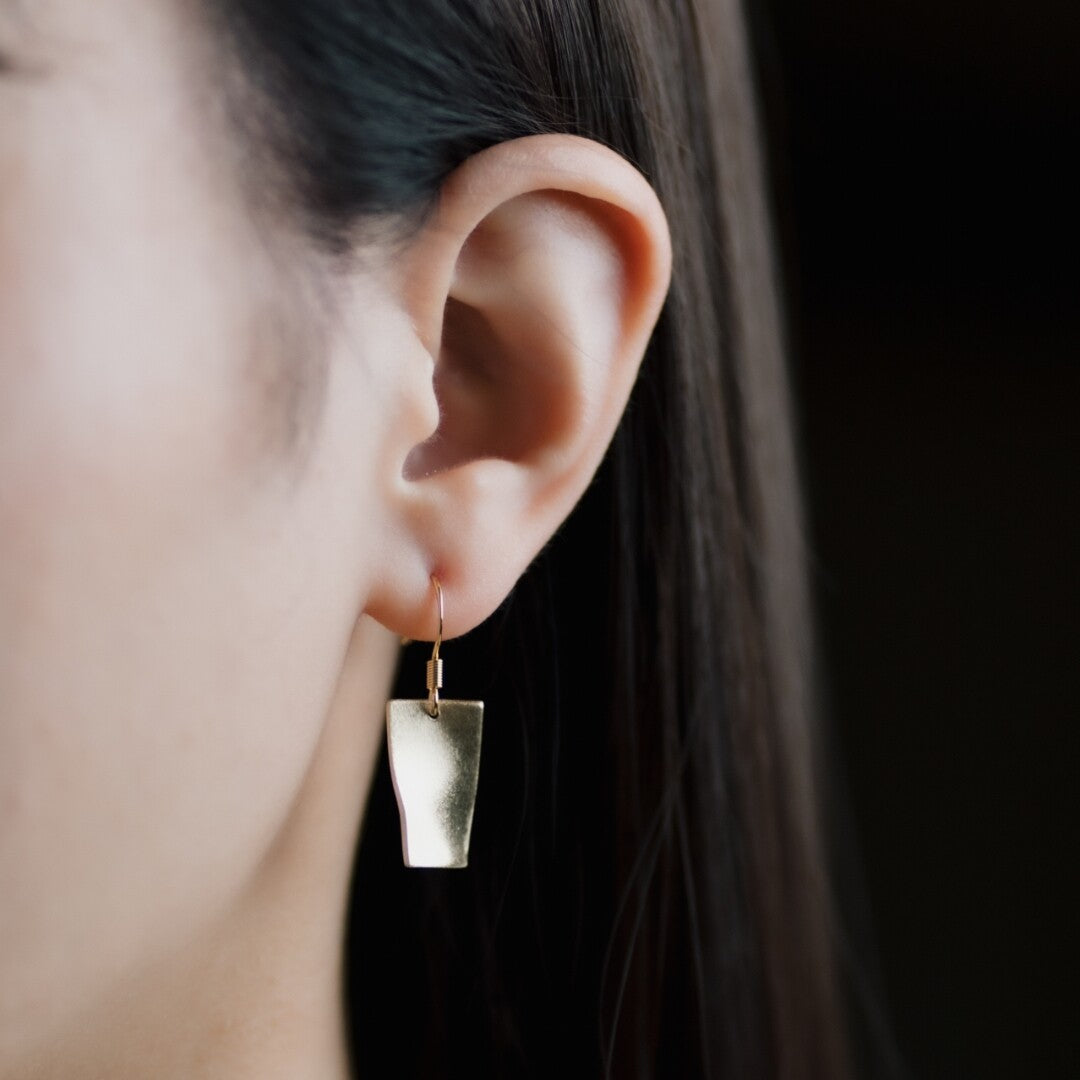 這款耳環的設計靈感源自於垂墜的布料,營造出一種寧靜的氛圍。