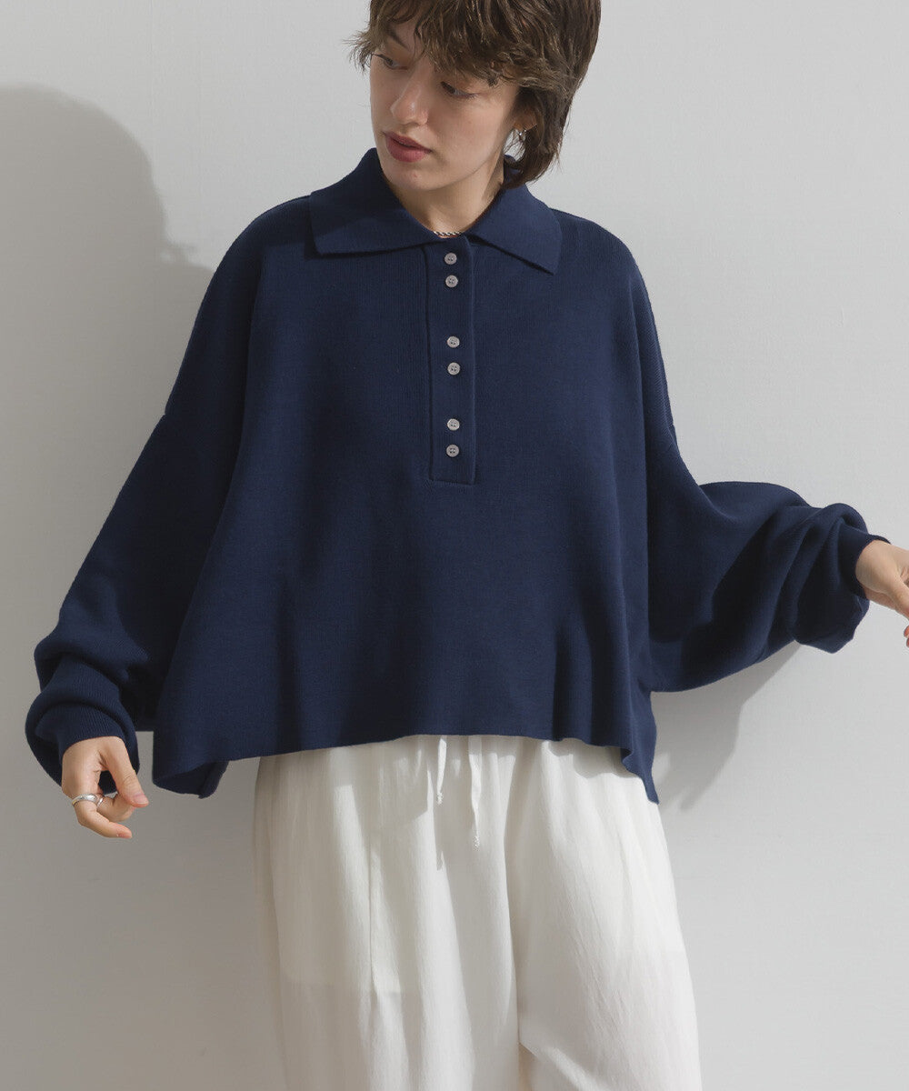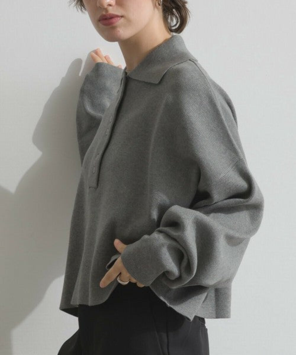 修身的廓形,例如搭配寬褲或長裙,都能完美駕馭。同樣,它也能與寬鬆的下裝相得益彰。 Polo領的細節設計更添精緻感,打造出休閒又不失優雅的造型。