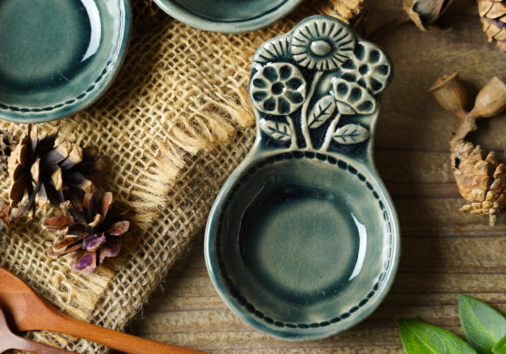 花朵浮雕圖案十分引人注目。柔和的色彩營造出溫馨愉悅的餐桌氛圍。