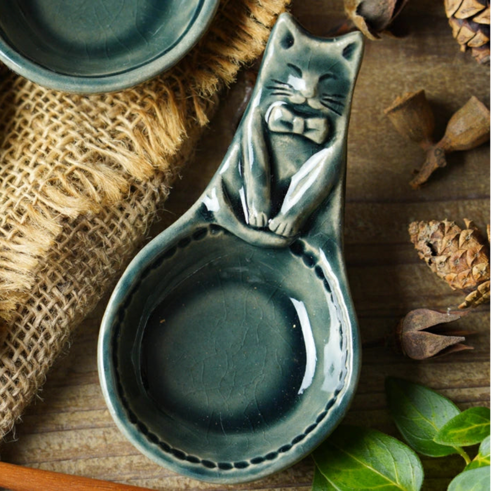 貓咪浮雕圖案十分引人注目。真是太可愛了!柔和的色彩營造出溫馨愉悅的餐桌氛圍。