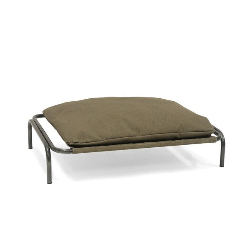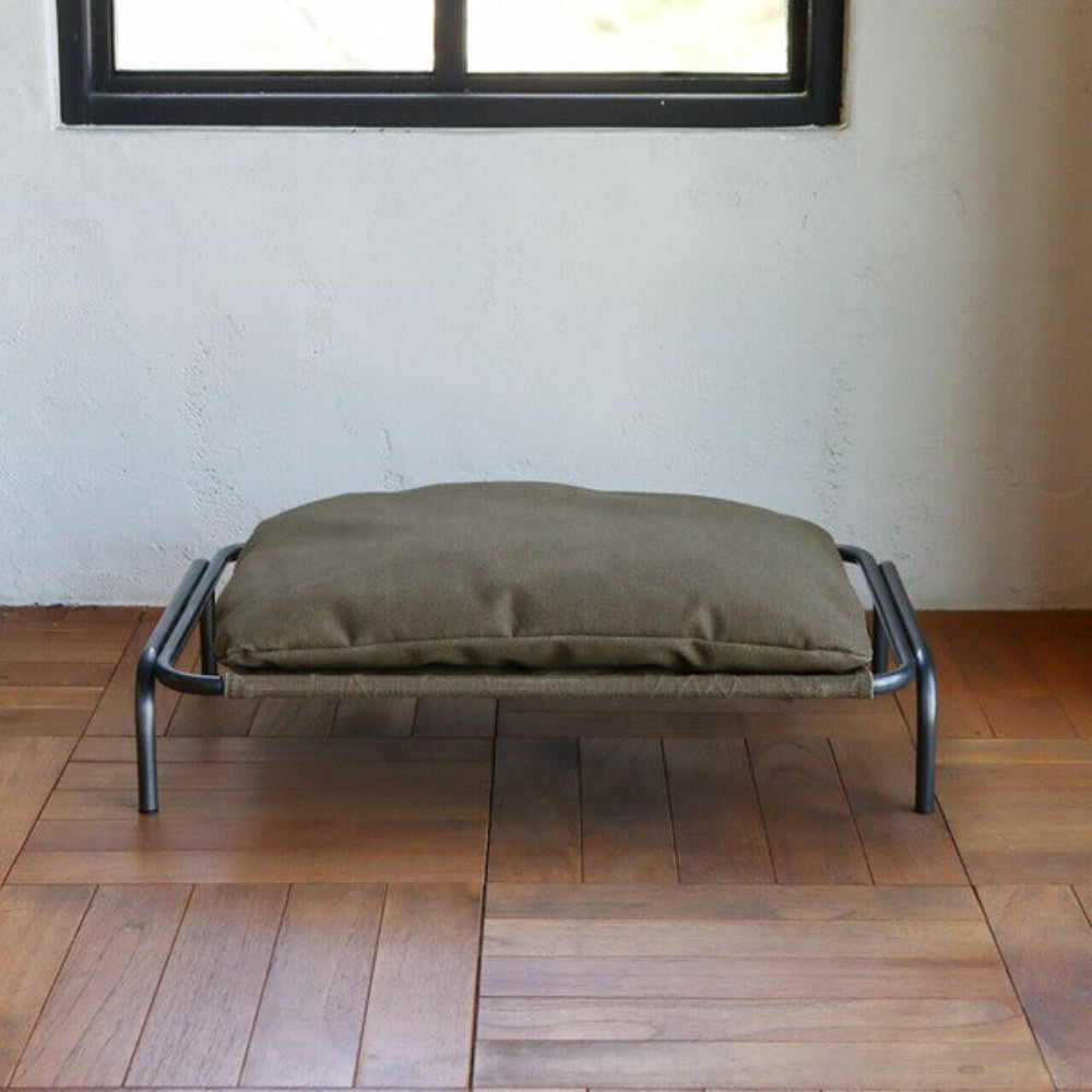簡約的設計如同小型凳般自然融入室內裝潢,並著重展現工業風和復古質感。保留了焊接痕跡和輕微刮痕的鐵架,配有一組可固定在背面的靠墊。靠墊套可拆卸清洗。