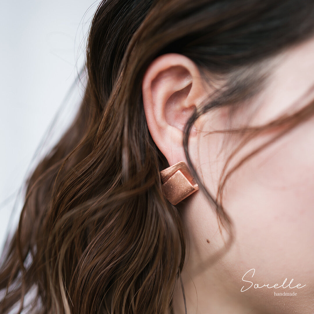 這款耳環的設計靈感來自對半分開的折疊造型。