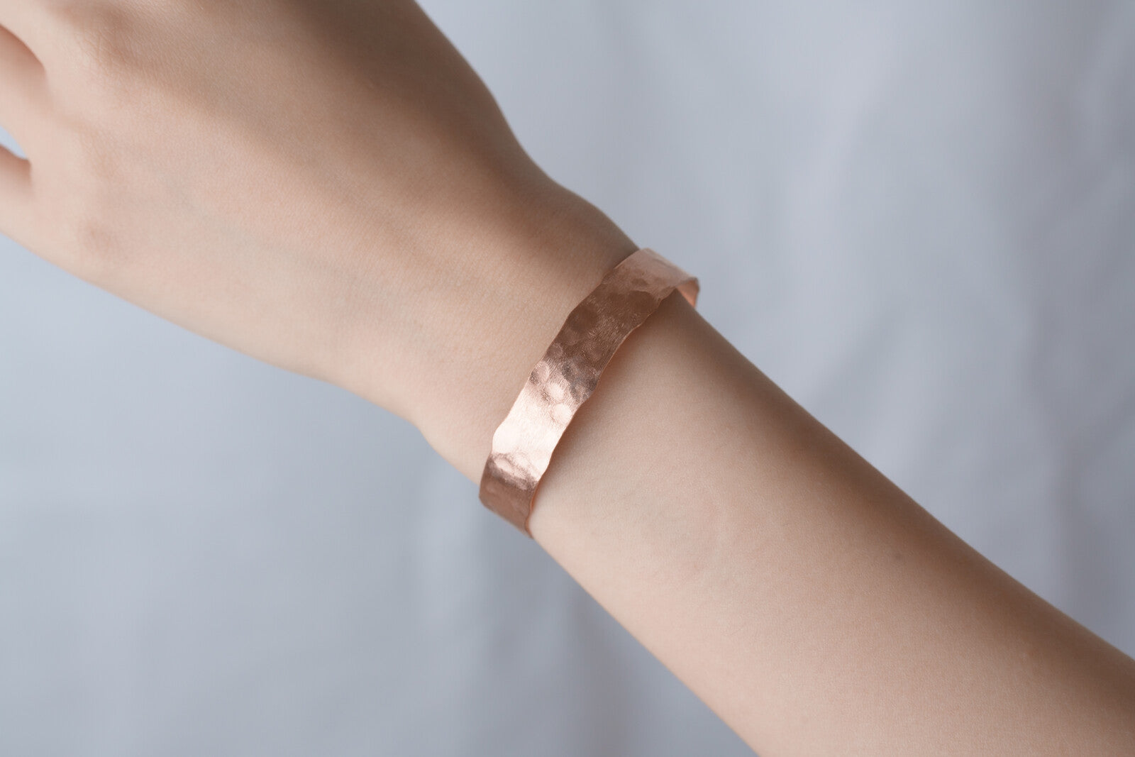 這款手鐲採用1.0毫米厚的純銅雕刻而成,表面經過精心拋光,觸感舒適。