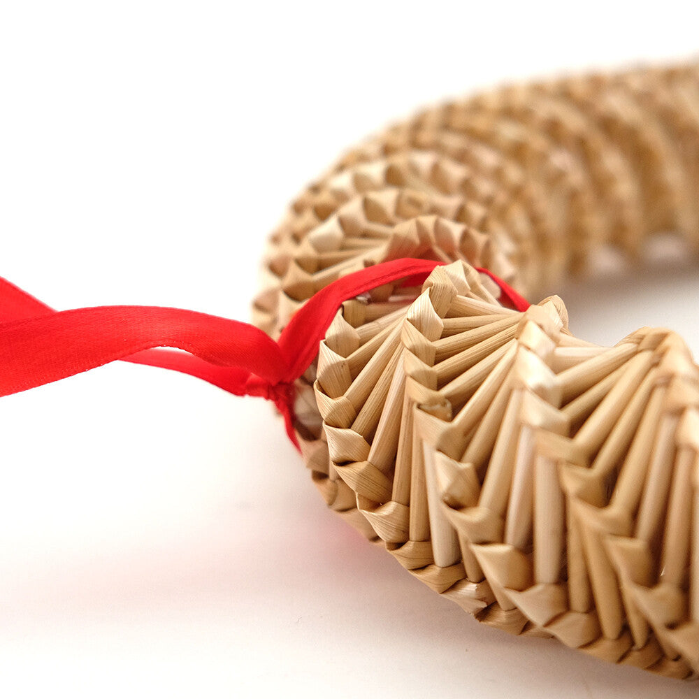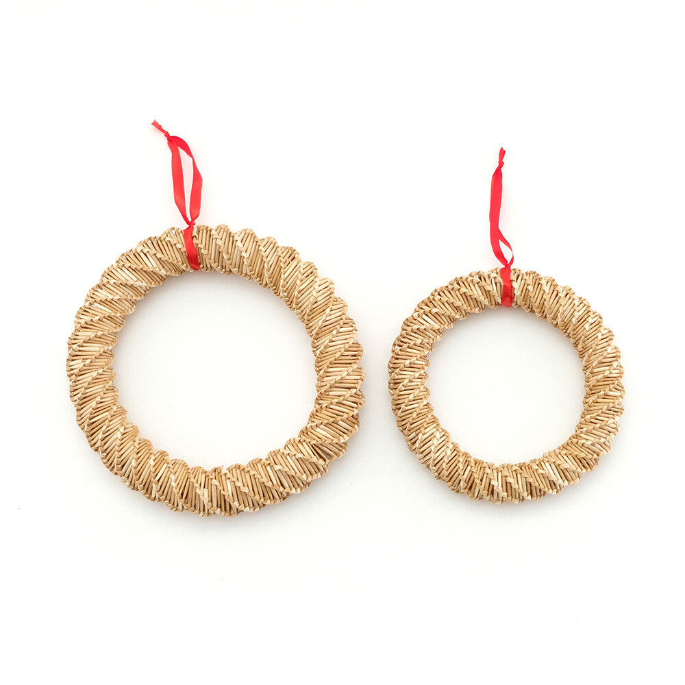 草編花環由稻草等植物纖維製成,天然材質賦予其自然美和溫暖質感。由於由工匠手工編織,每一隻都獨一無二。