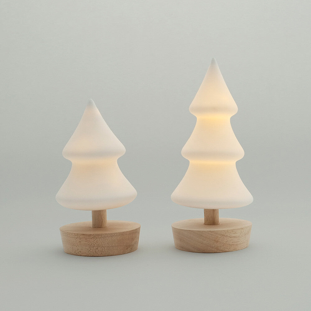 這款樹形裝飾品採用純白色半瓷(炻器)製成,散發著古樸的氣息。 LED燈光在冬夜裡溫柔地環繞著您。即使白天關燈,即使白天關燈,它也能作為室內裝飾品,在任何房間中脫穎而出。