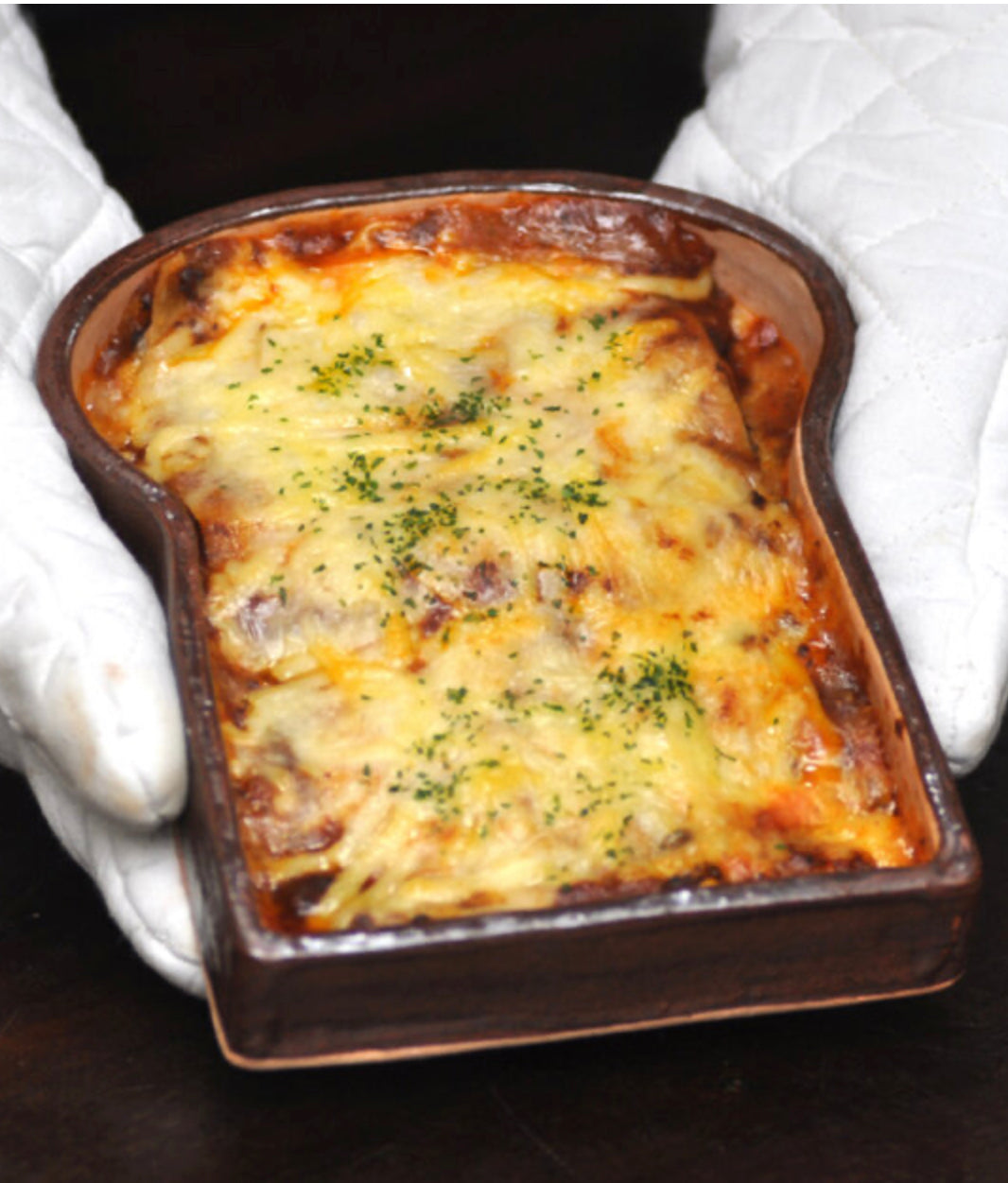 以耐熱土製作, 可以放進焗爐使用。
