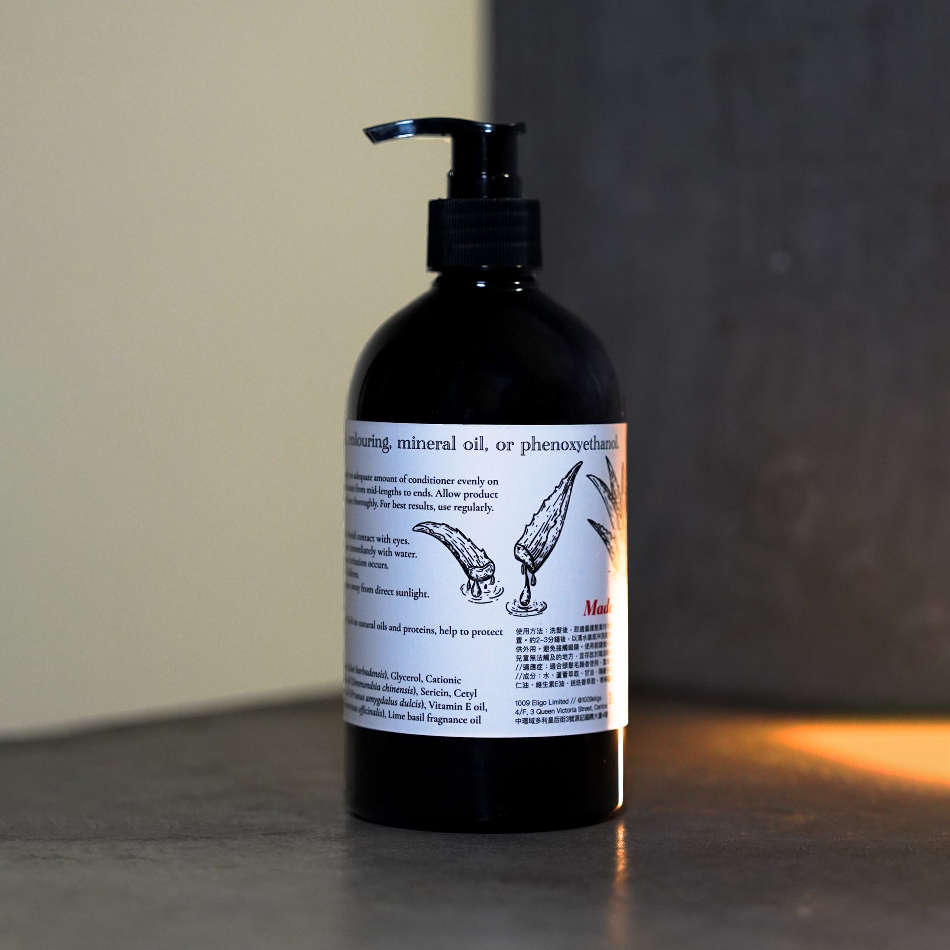 成分: 水、蘆薈萃取、甘油、陽離子乳化蠟、荷荷巴油、絲氨基酸、鯨蠟醇、甜杏仁油、維生素E油、迷迭香萃取、青檸羅勒香氛油