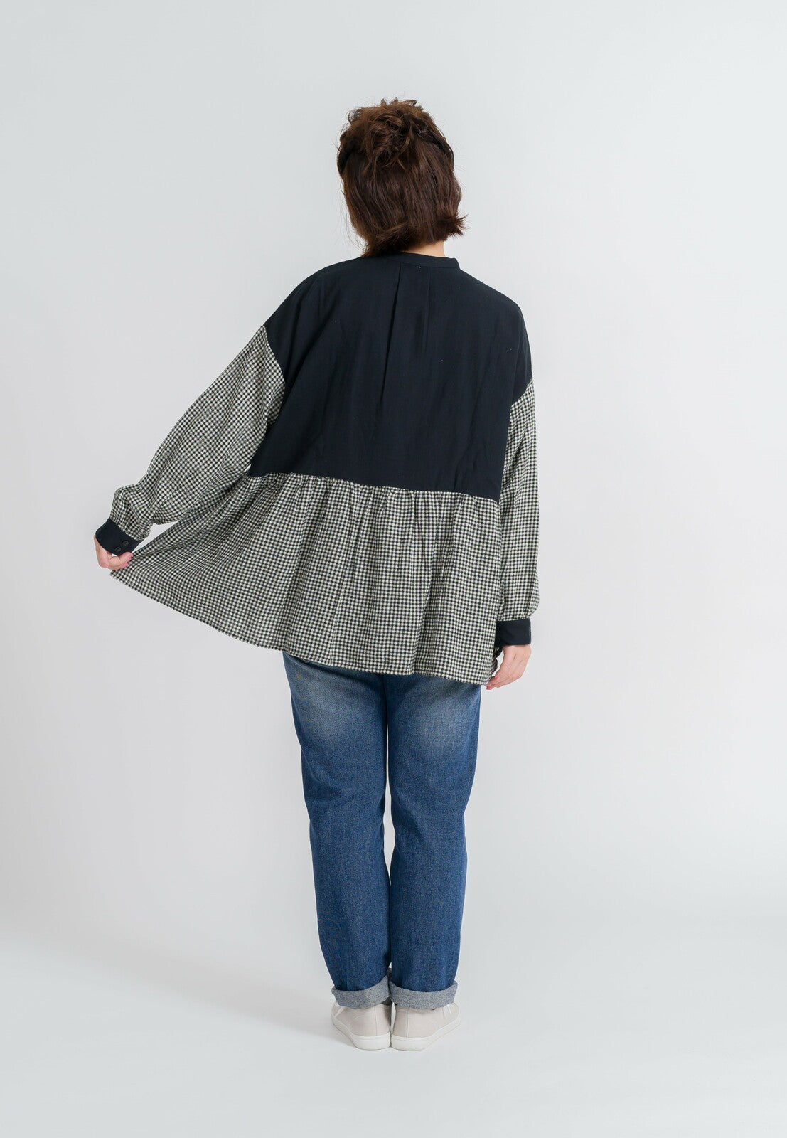 俏皮、柔軟的襯衫。這款單品將純色與精緻的格紋融為一體。