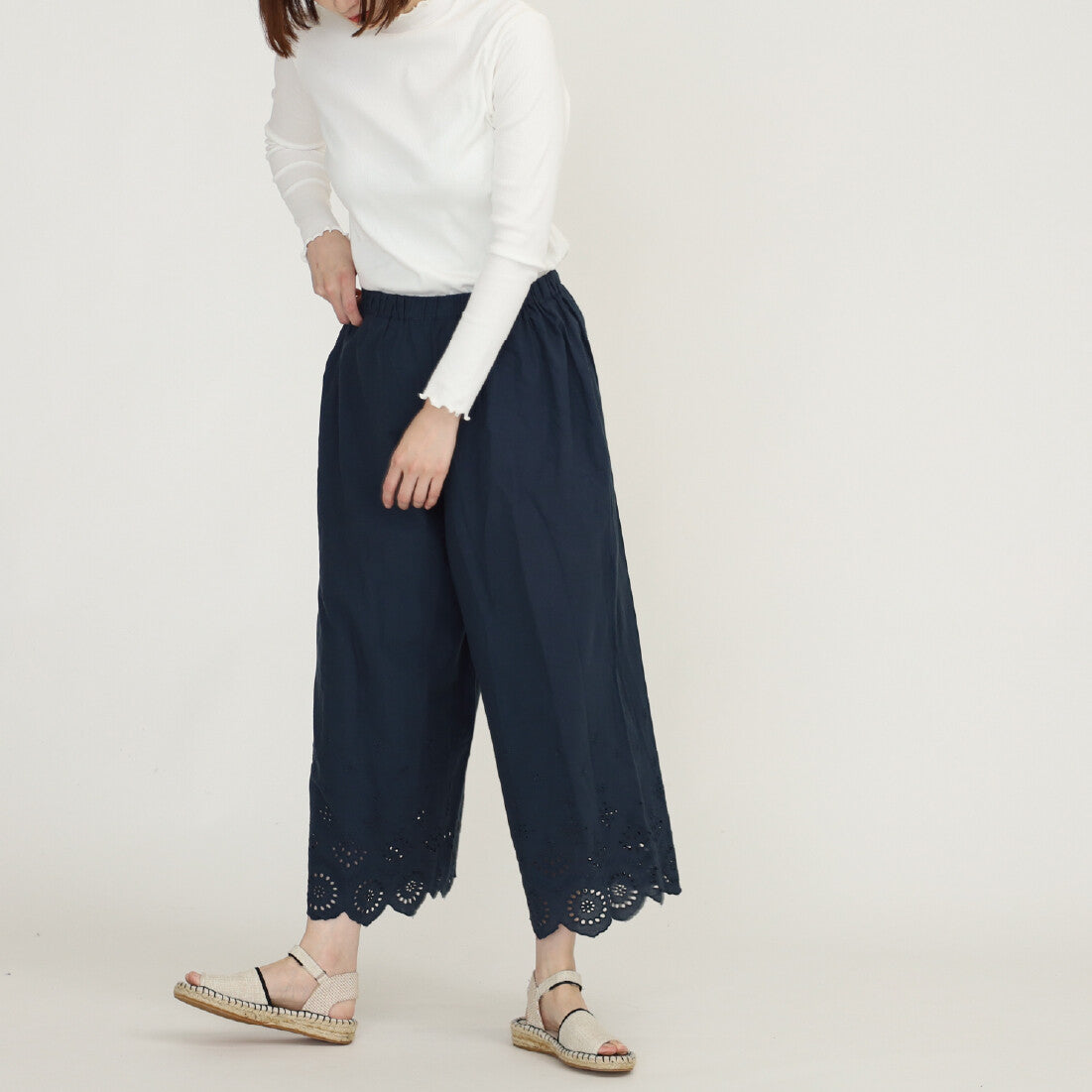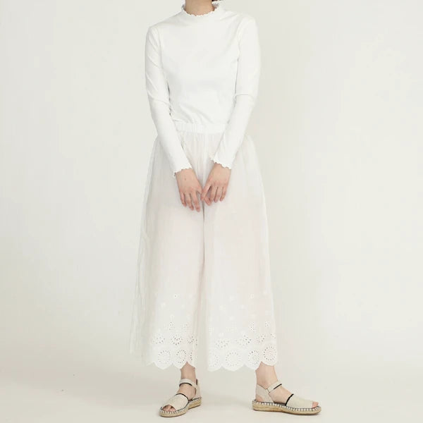 蕾絲下擺闊腳褲,展現自然柔美的氣質。