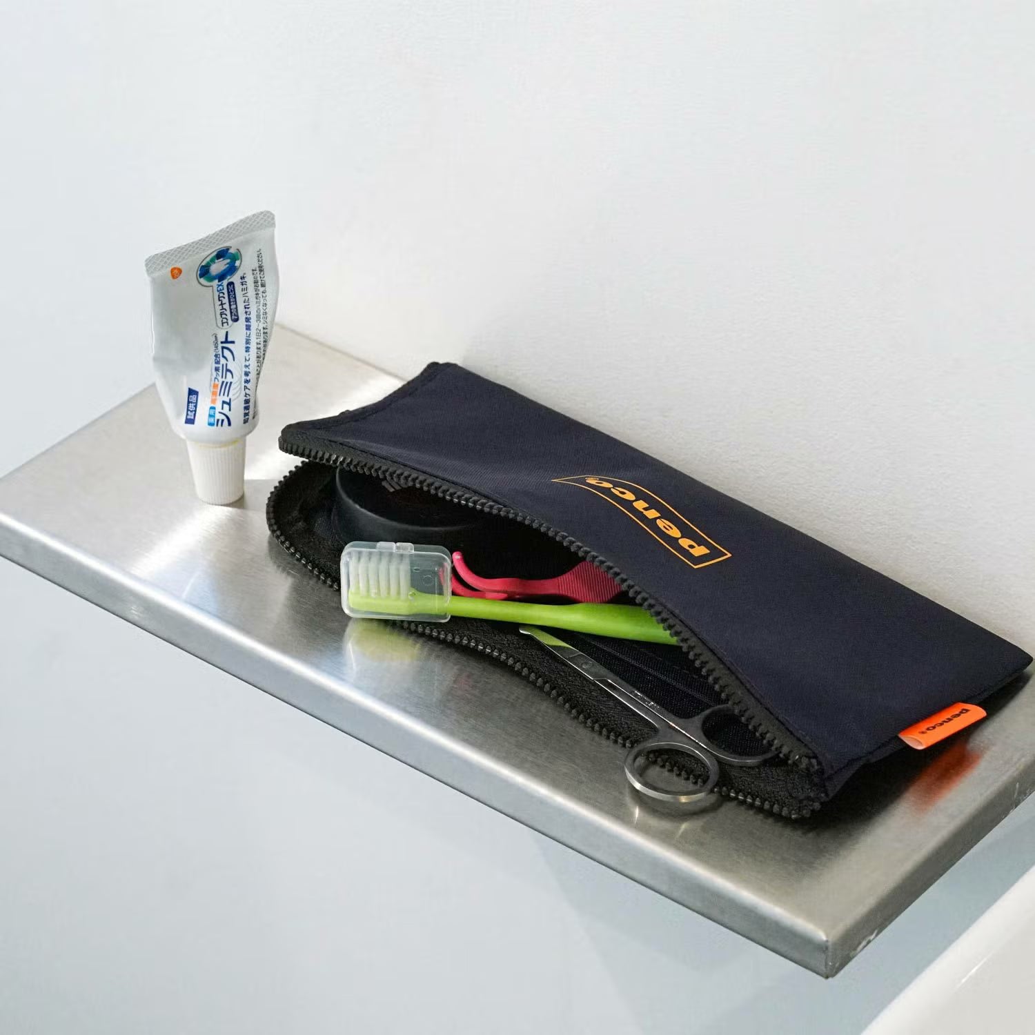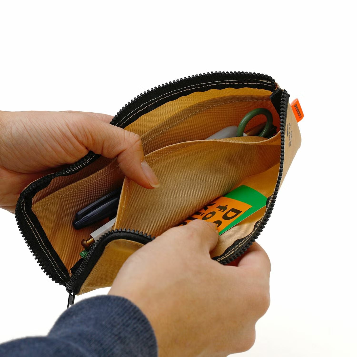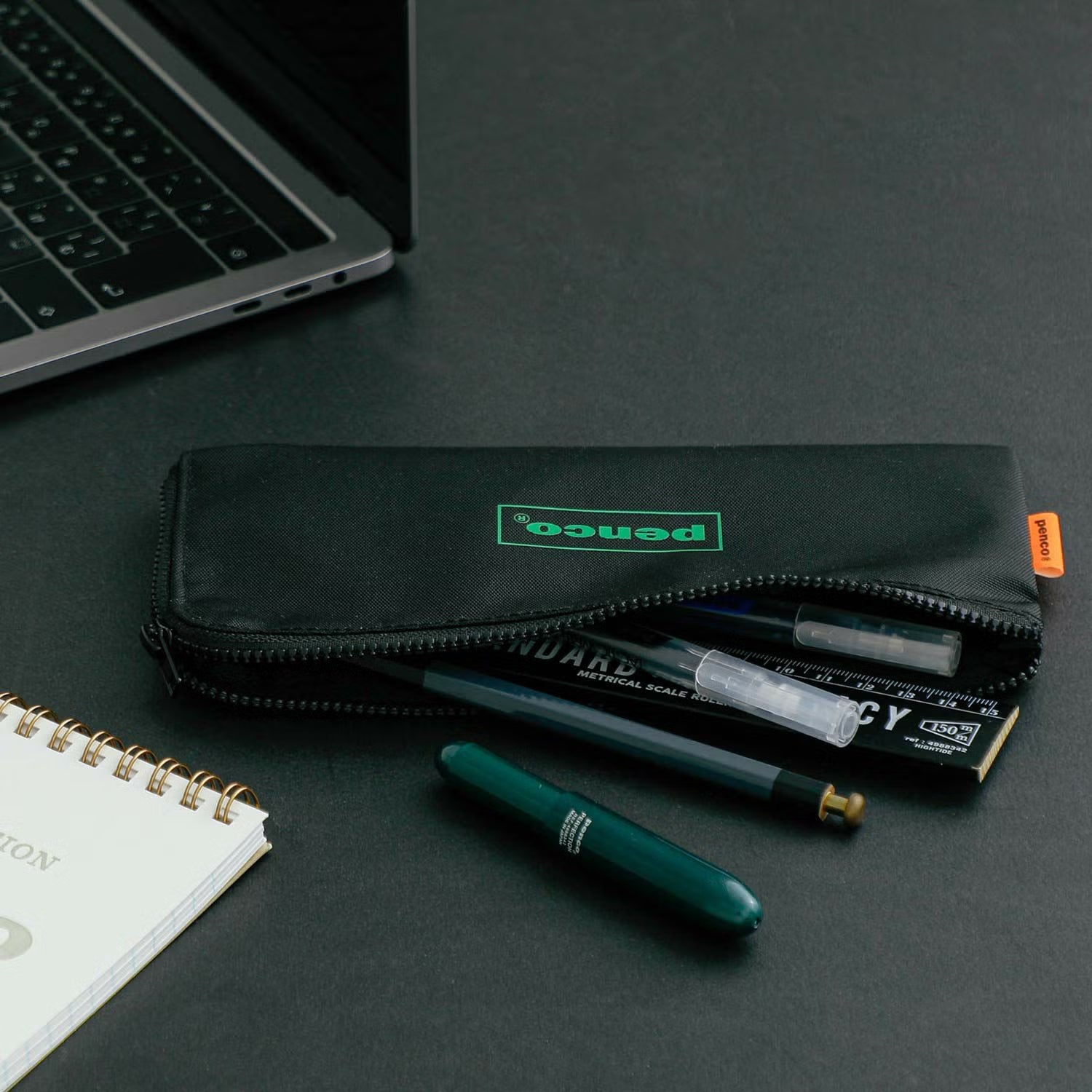 這款來自 penco 的扁平筆袋設計休閒時尚。寬大的開口和 L 型拉鍊方便您輕鬆取用剪刀、尺等物品。