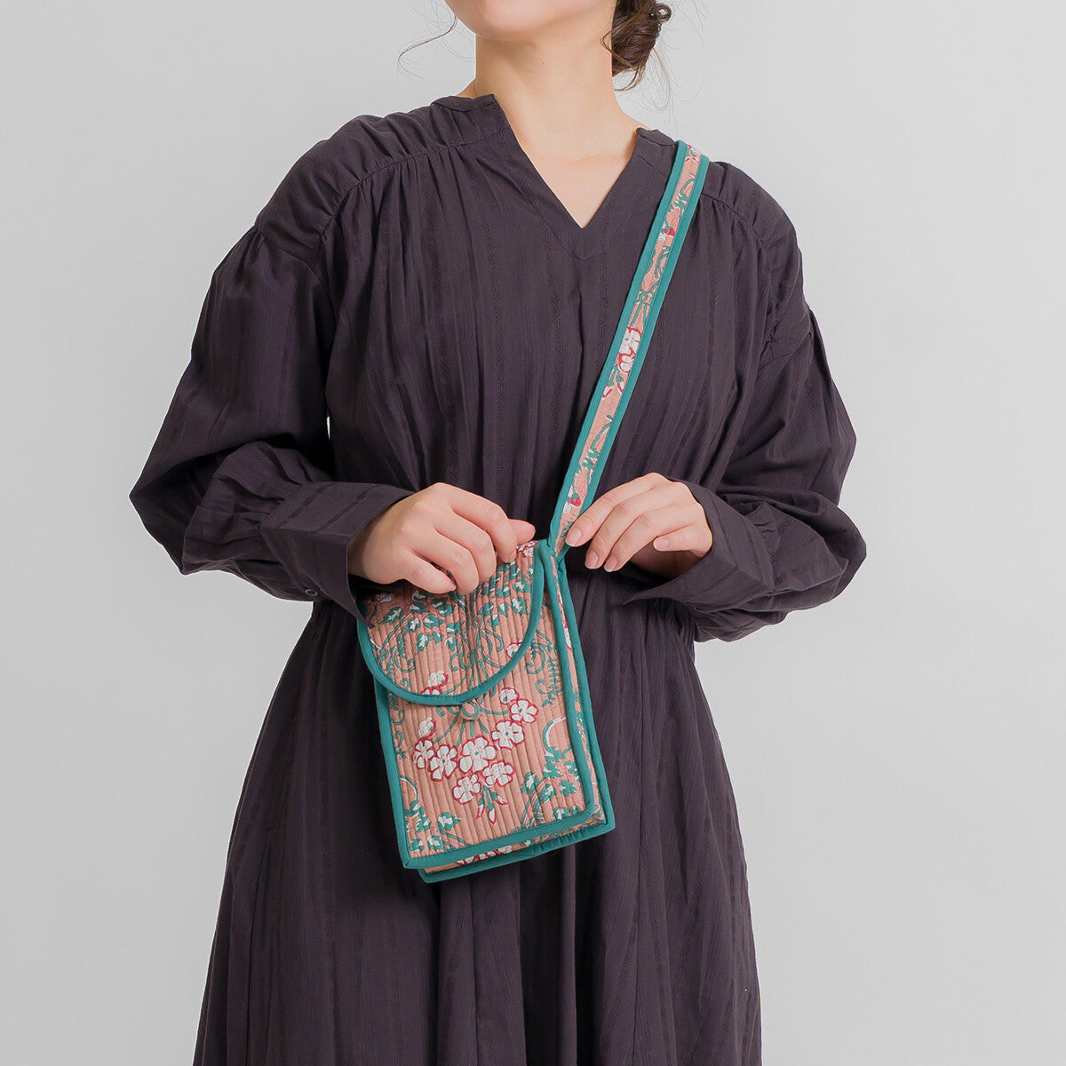撞色花卉絎縫單肩包