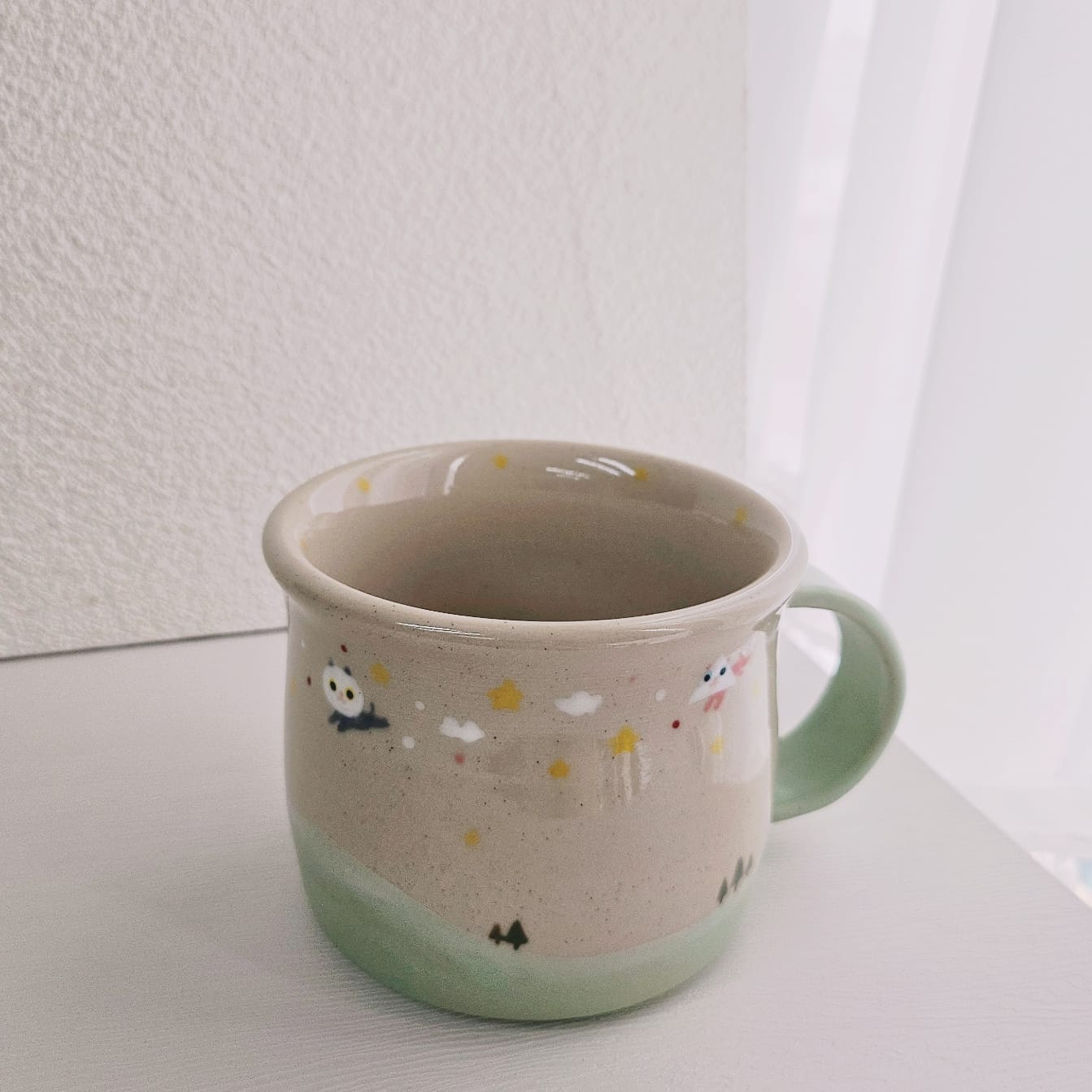這是手繪加上啞面平原釉料結合成的自由貓天使 的馬克杯。