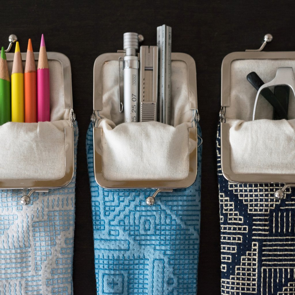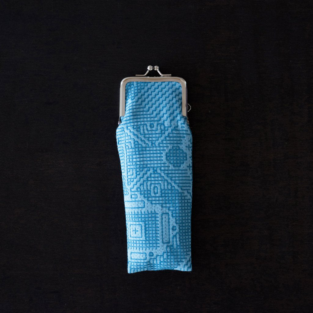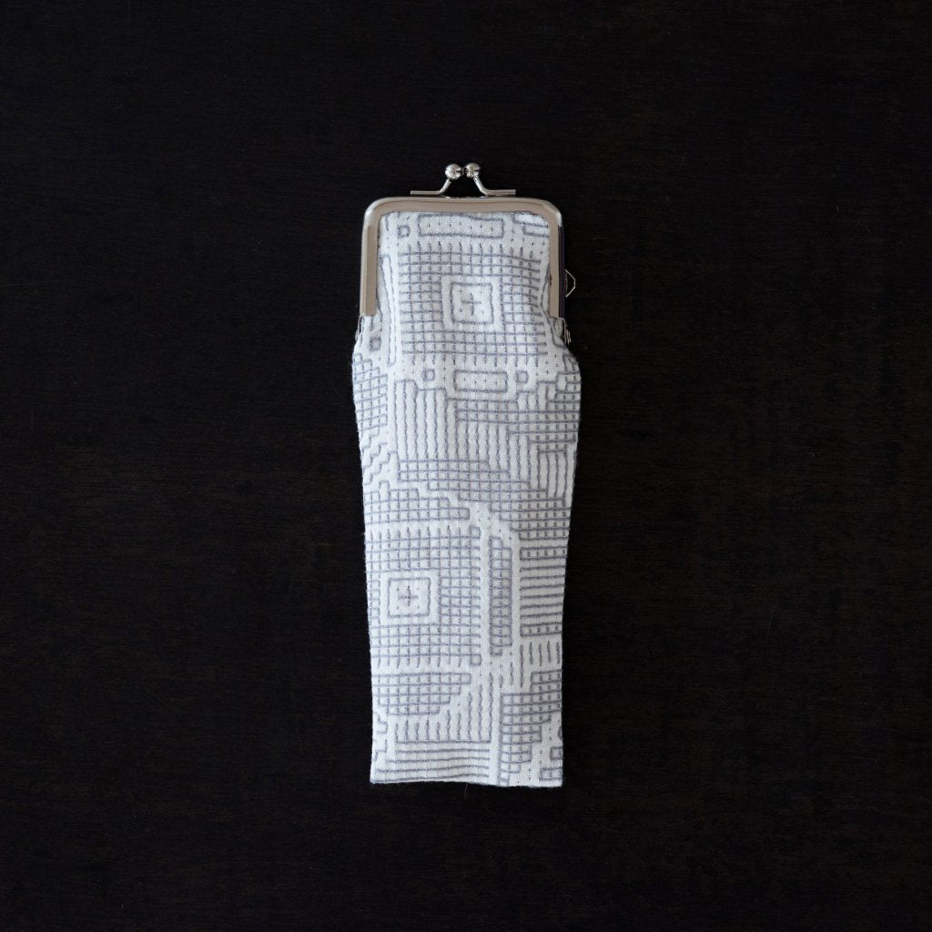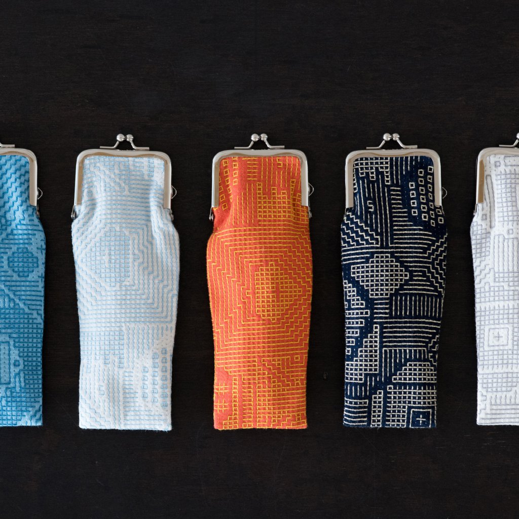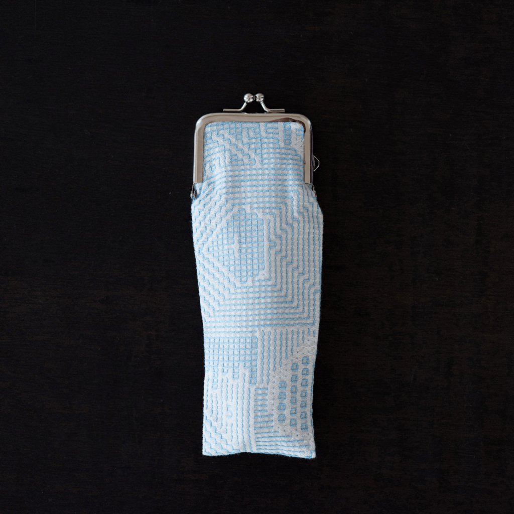 與福島縣三和織物共同開發的針織布長口金零錢包。