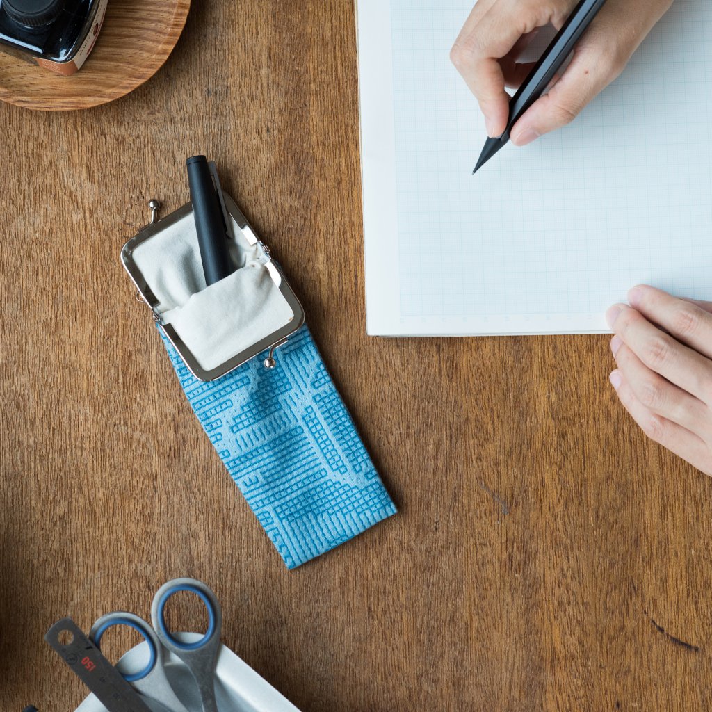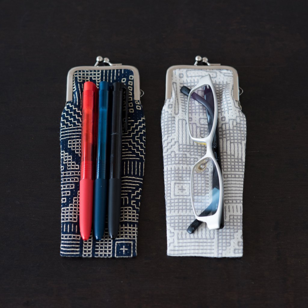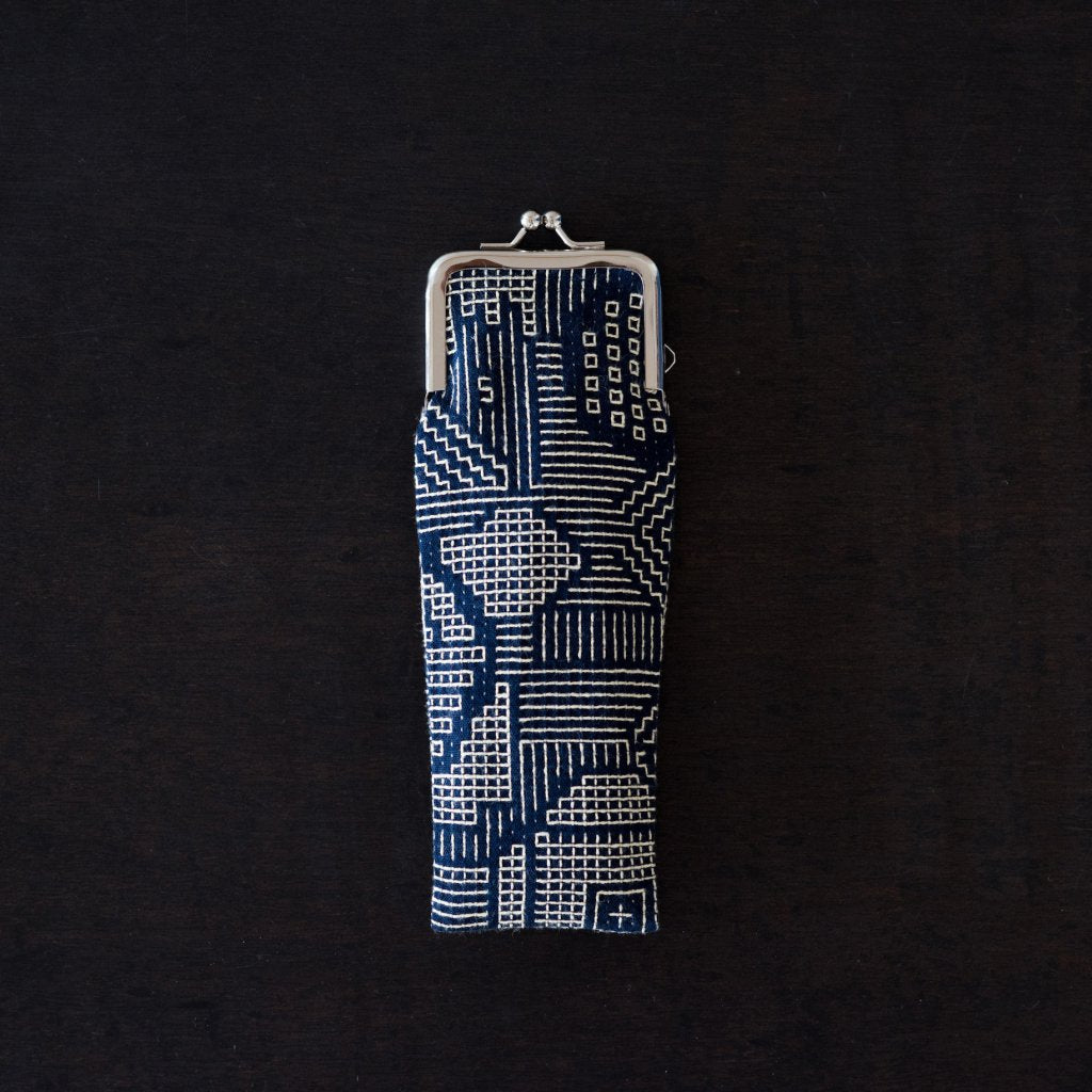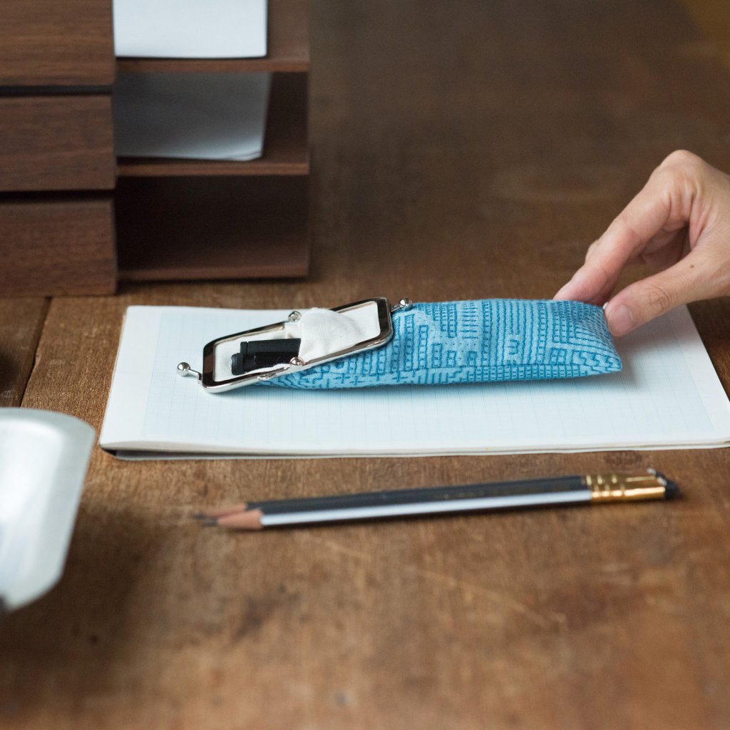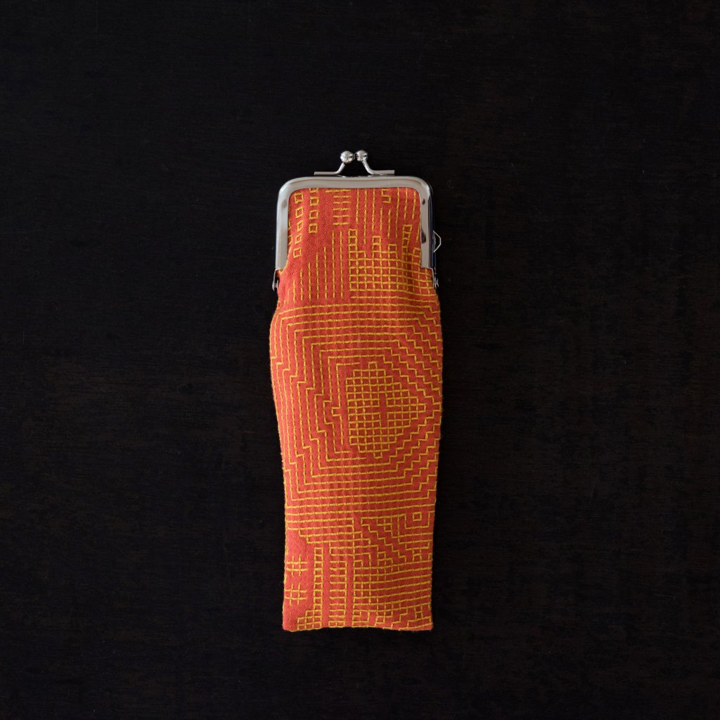 與福島縣三和織物共同開發的針織布長口金零錢包。