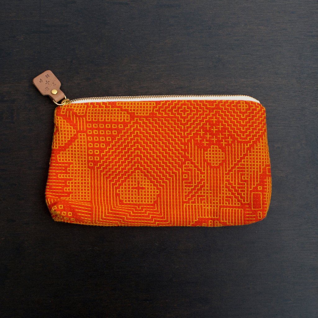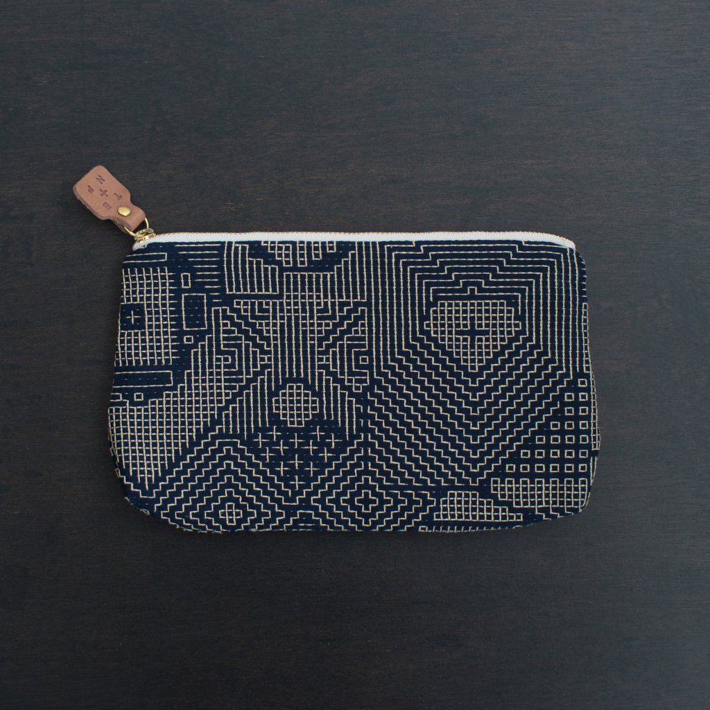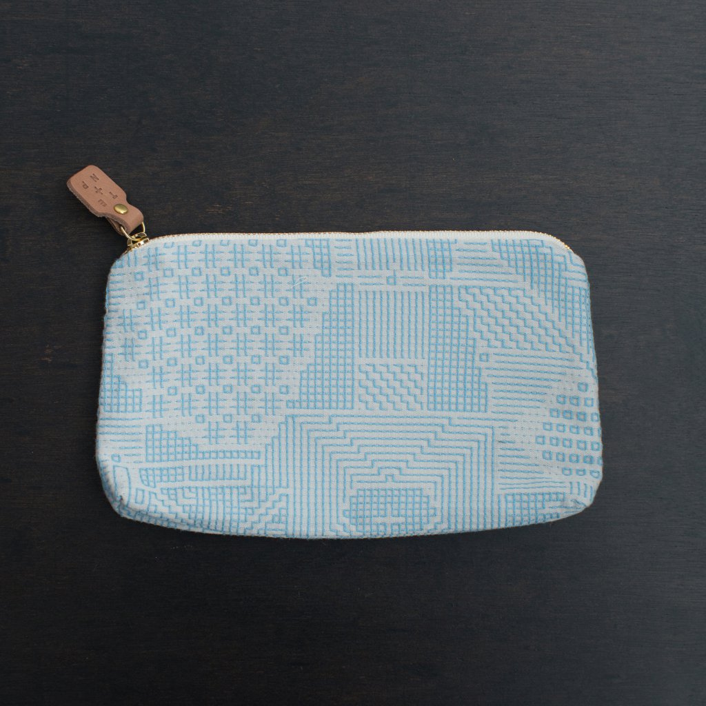 與福島縣三和織物共同開發的針織布長口金零錢包。