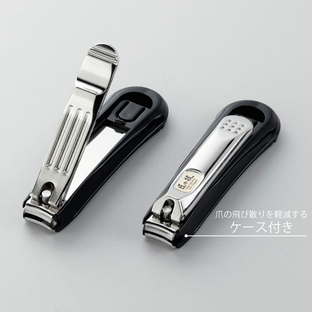外殼兩側均設有凹口,即使是較大的指甲也可以一次剪短。此外,為了減少指甲飛出的風險,盒子被設計成覆蓋刀片的最邊緣。