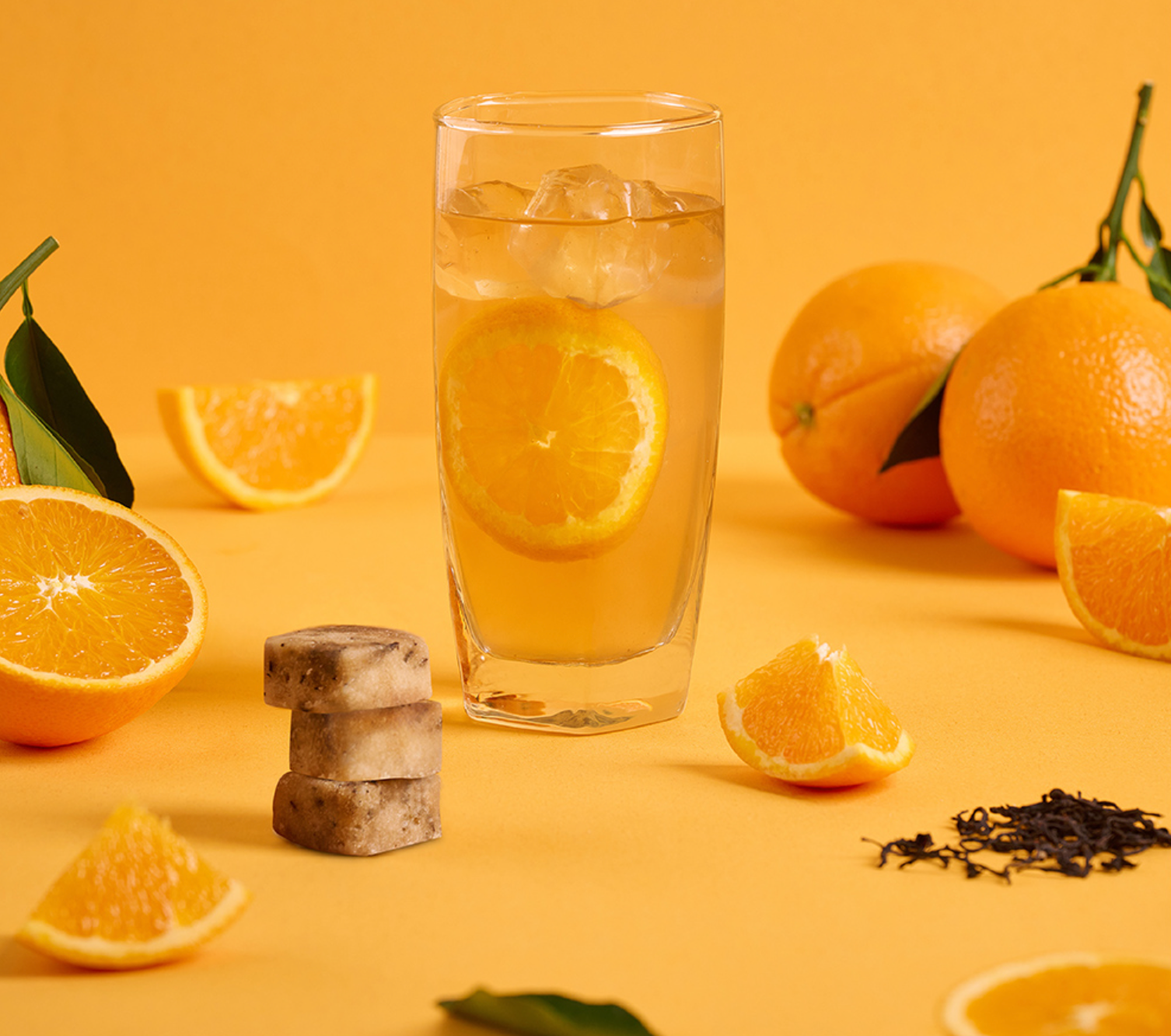 - 以熱水泡溶糖磚後,除可熱飲,亦可加入冰塊或冰水製成凍飲,四季皆宜。