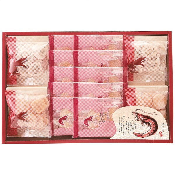 10 包紅蝦米餅(每包 1 片)和 10 克蝦餅(漩渦蝦和松風蝦各 2 包)。