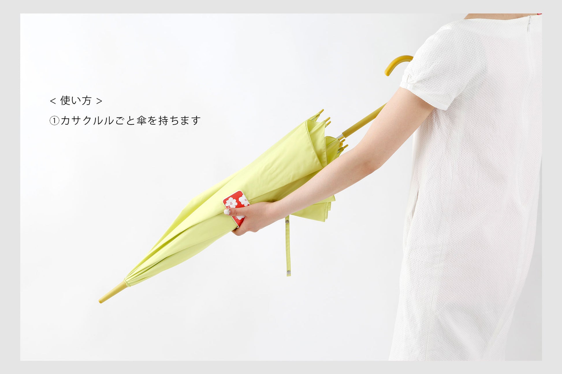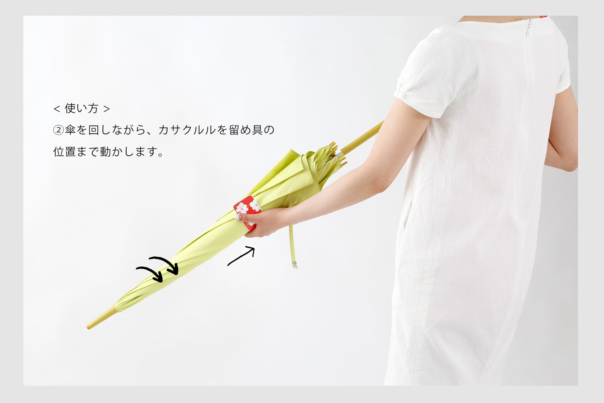 捲傘時可免將手弄濕: 將傘夾由傘尖套起, 再慢慢推動和轉動雨傘, 就可以不沾濕雙手而將雨傘卷起。