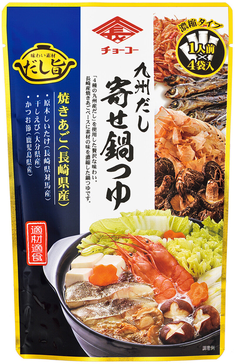 這款經典火鍋採用四種九州食材:長崎縣的烤飛魚、對馬島的原木香菇、鹿兒島縣的鰹魚片以及大分縣的蝦米。經典的湯底,卻蘊含著奢華濃鬱的風味。採用本釀造原味醬油製成。