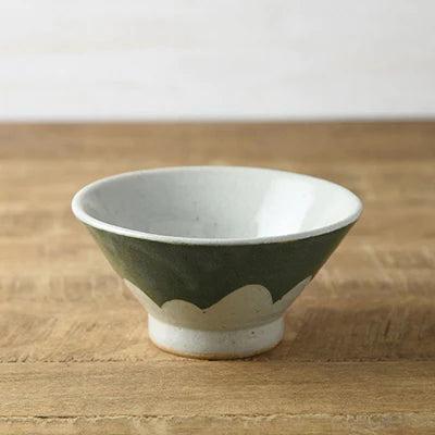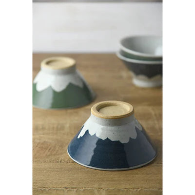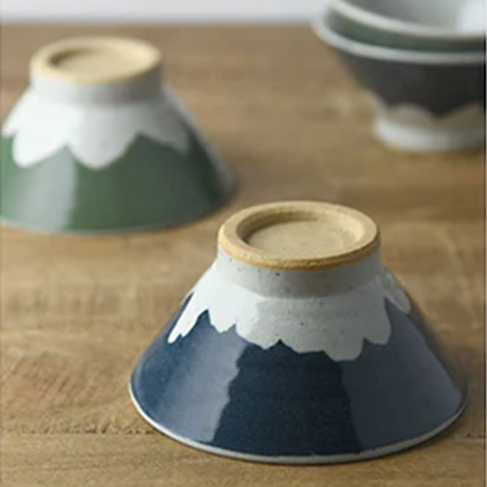手工做的13cm富士山形飯碗,外表是綠色的富士山