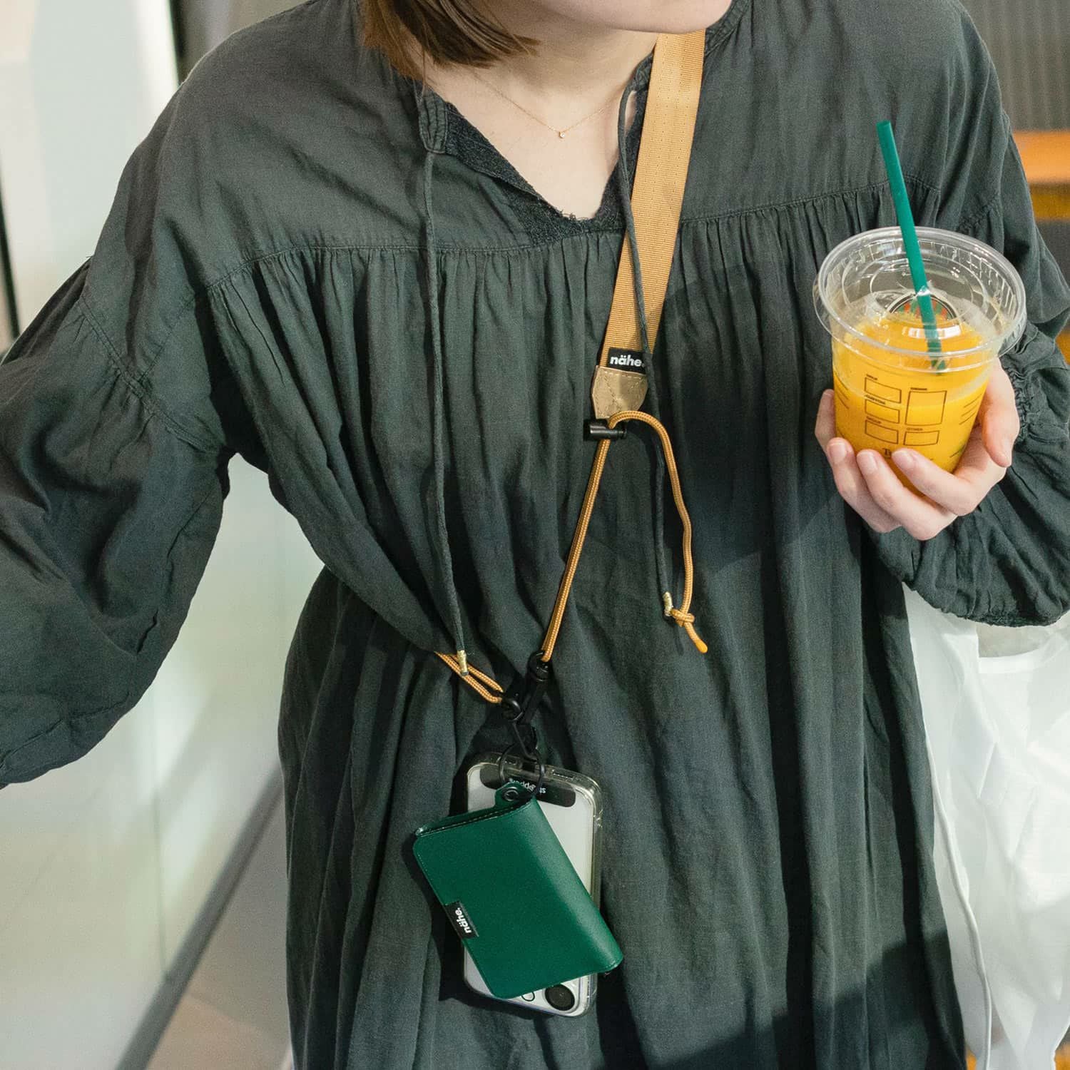 這款多功能背帶可依您的需求進行調整。它採用扁平帶子,即使長時間佩戴也能保持舒適,並配有圓形繩帶,打造時尚外觀。此外,它還配有 D 形環,方便您懸掛鑰匙、鑰匙鍊和其他物品。此外,還推薦用於放置智慧型手機、Nee 的輕量錢包或防水袋。