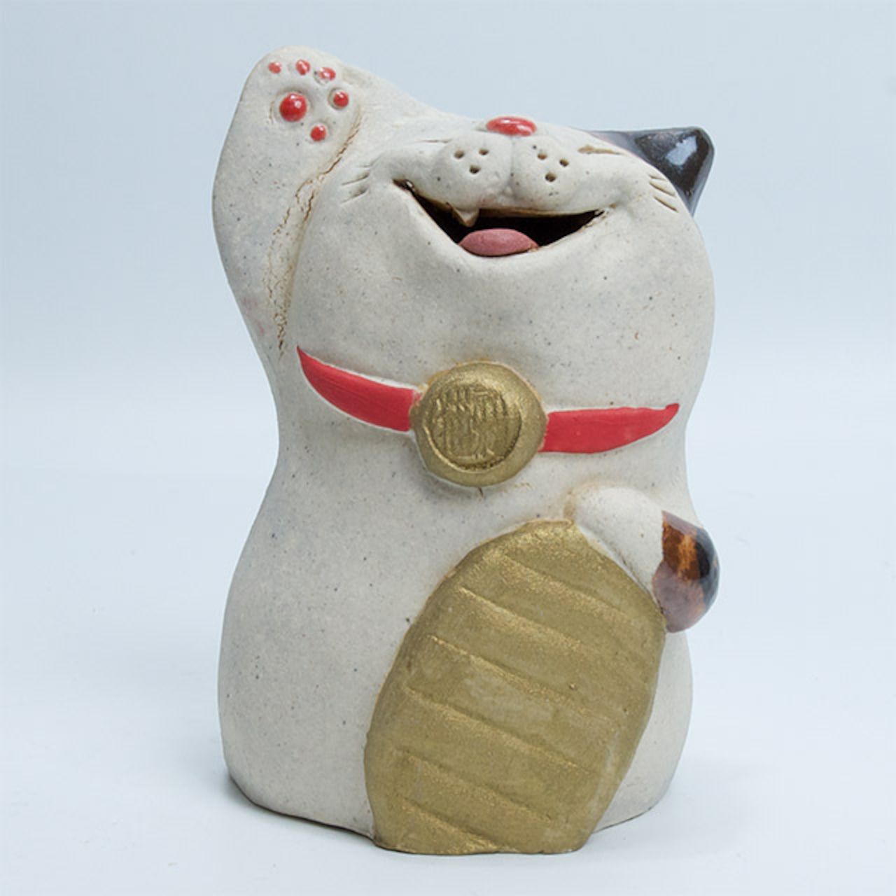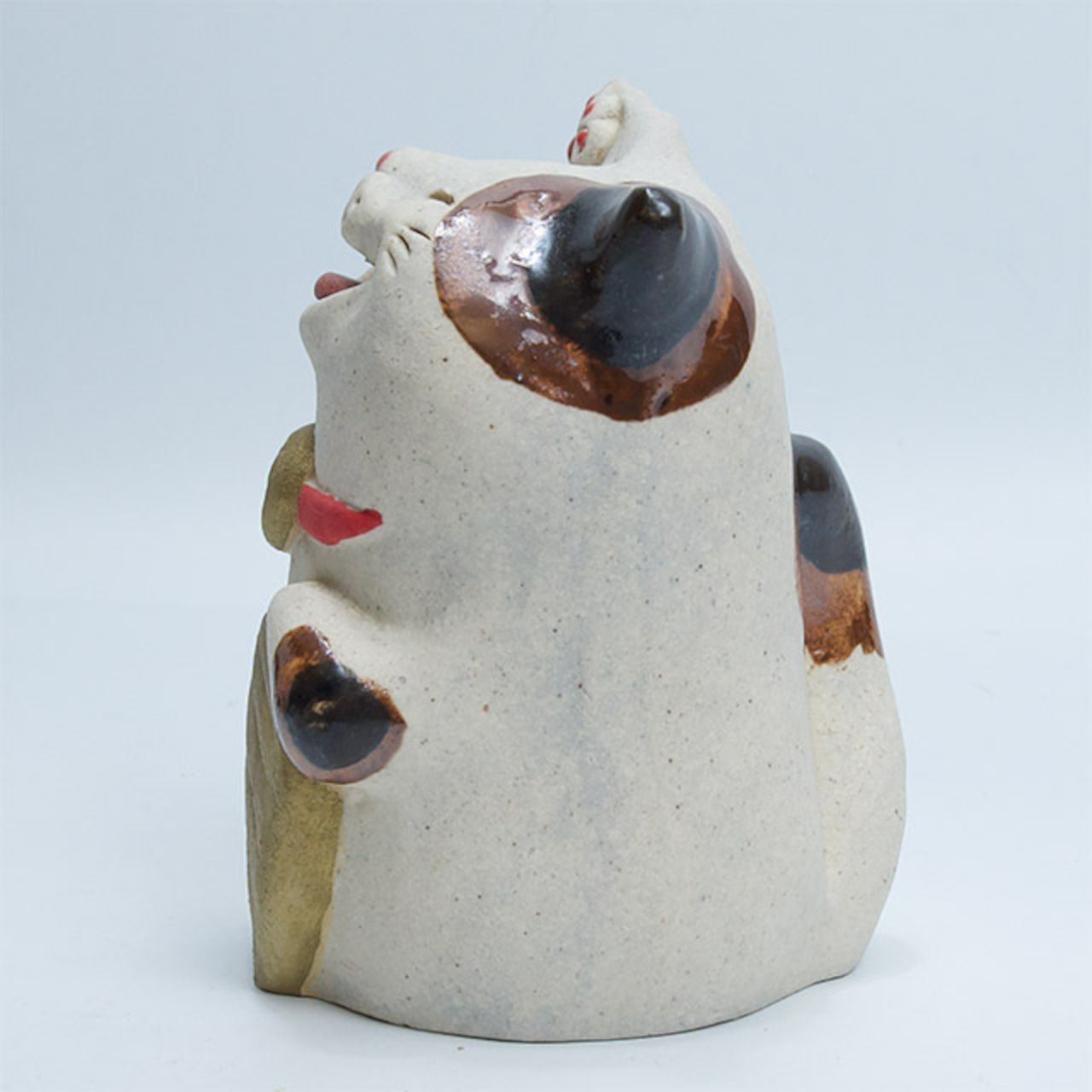 陶藝家 布施 猫 喜歡以貓為製作人形中心,製作出具有自己特色的日本緣起物。 每一只作品的樣子都充滿反差感,有一點奸,卻散發出一種可愛。