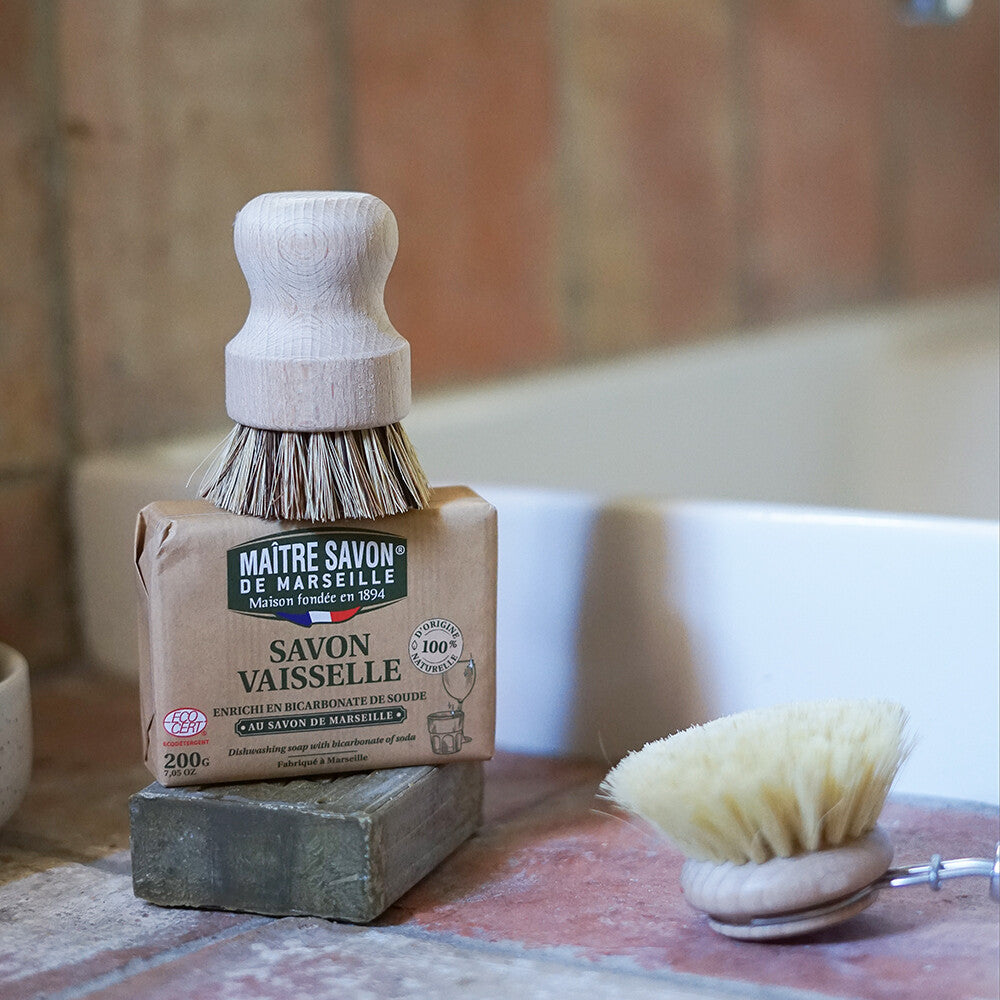 由傳統馬賽皂添加小蘇打製成的洗碗皂。它可以洗去頑固的油污並滋潤您的雙手。