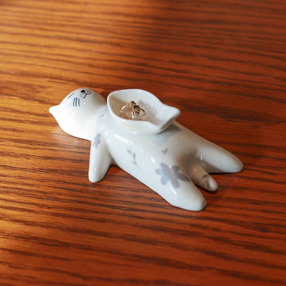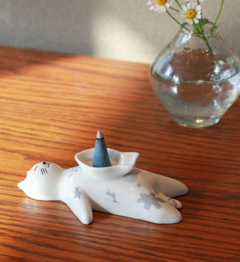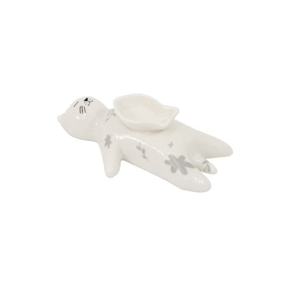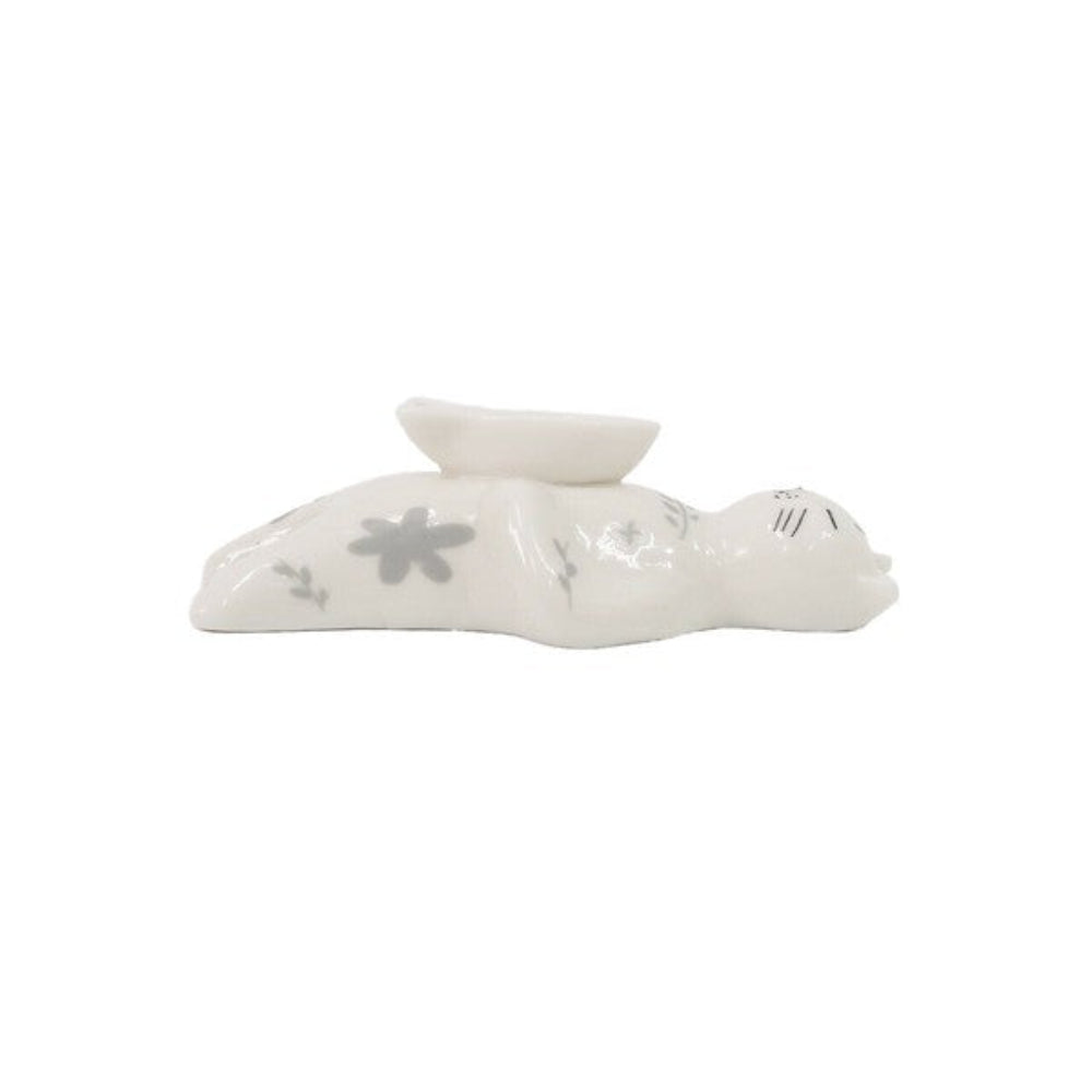 這款瓷質貓咪香爐飾有精美的花卉圖案。將香錐放入臥貓腹部的魚形容器中,享受淡淡的香氣帶來的舒緩放鬆。此款香爐亦可作為收納小物(如耳環、戒指)的托盤,為您的家居增添一抹可愛氣息,打造舒適愜意的桌面空間。