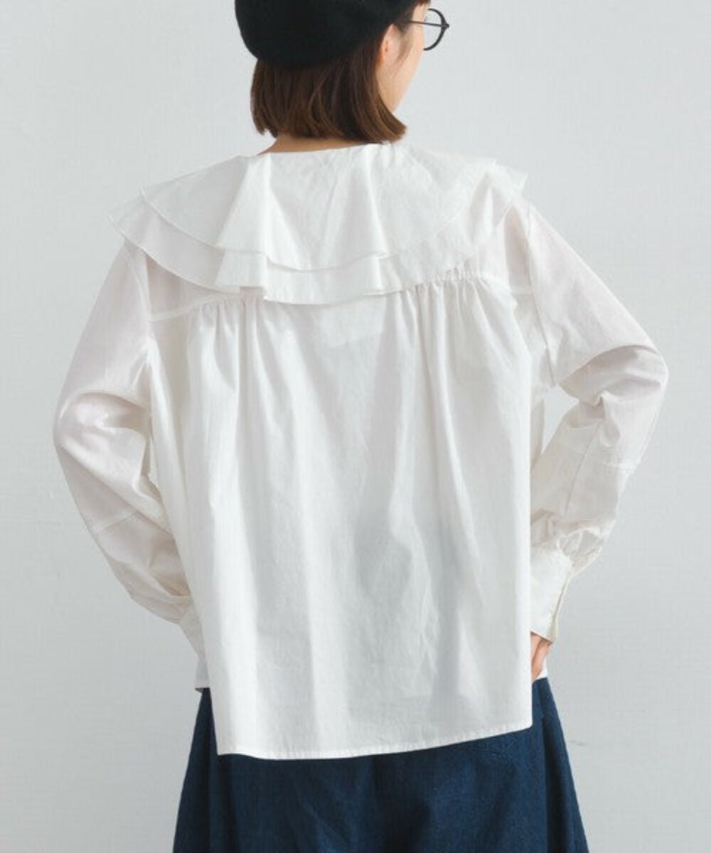 從肩膀到胸部的荷葉邊設計更凸顯了布料的質感。輪廓寬鬆,荷葉邊隨著你的動作輕輕搖曳,
