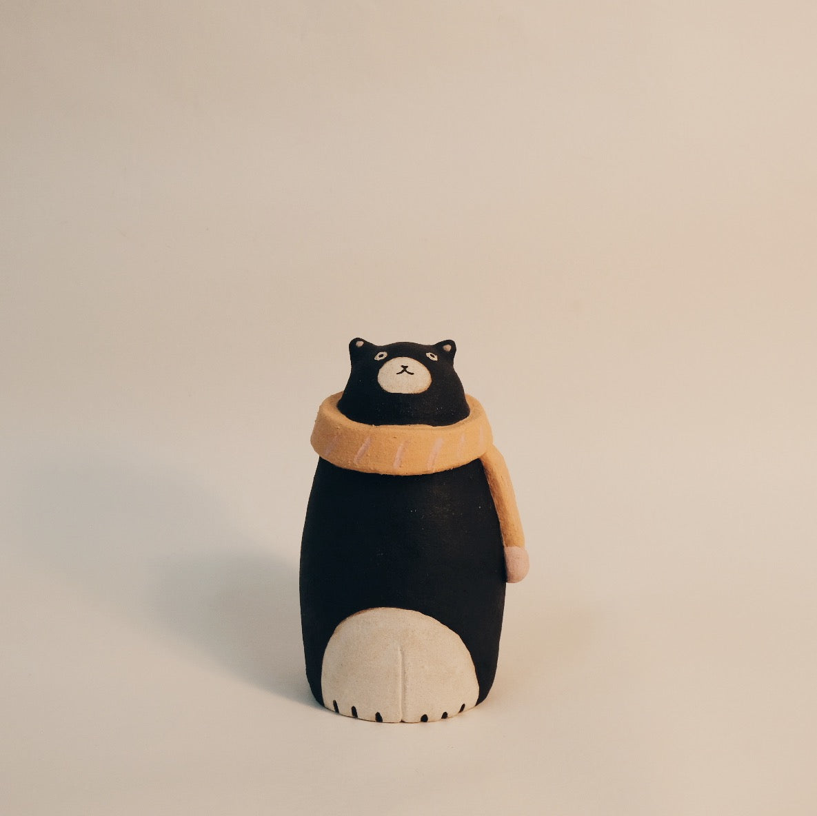 手捏小陶偶,以陶瓷顏料上色,燒至1230度,有些土內有小石頭,燒完作品表面會呈現不同的質感