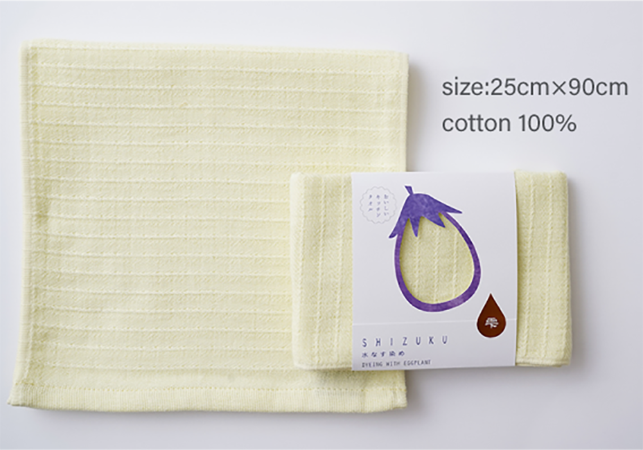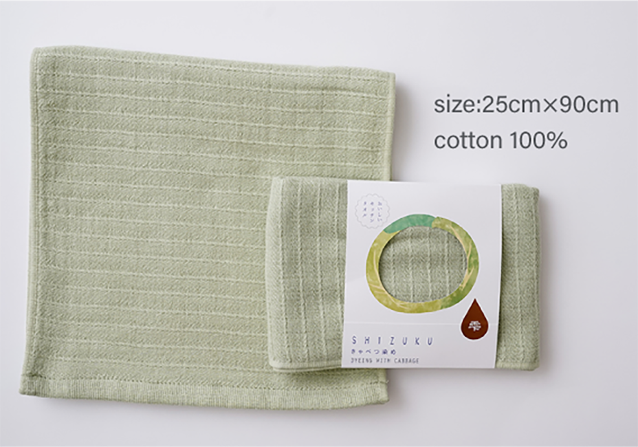 接著以袋谷毛巾的獨有染色技法將野菜本身的優美色彩展現於毛巾之上面不會容易褪色。同時,毛巾表面亦編纖了該種蔬果的圖案,美觀亦可愛。