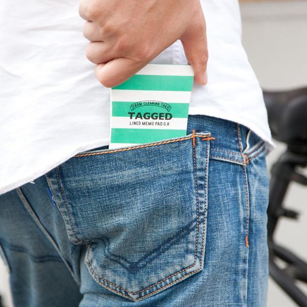 TAGGED MEMO PAD (tag de memo pad) is so easy to grip with one hand, it is a little hourglass shape. To fit even put it in your back pocket, also points are supple finish.