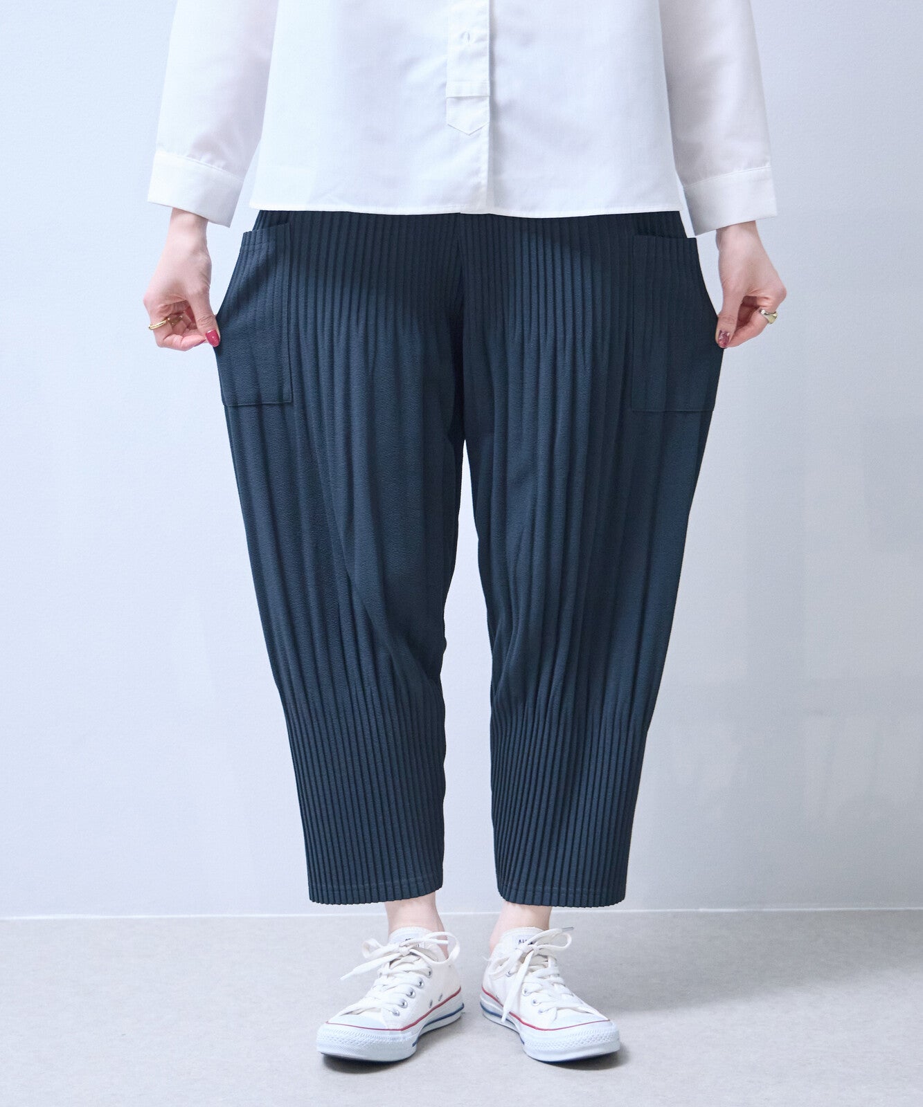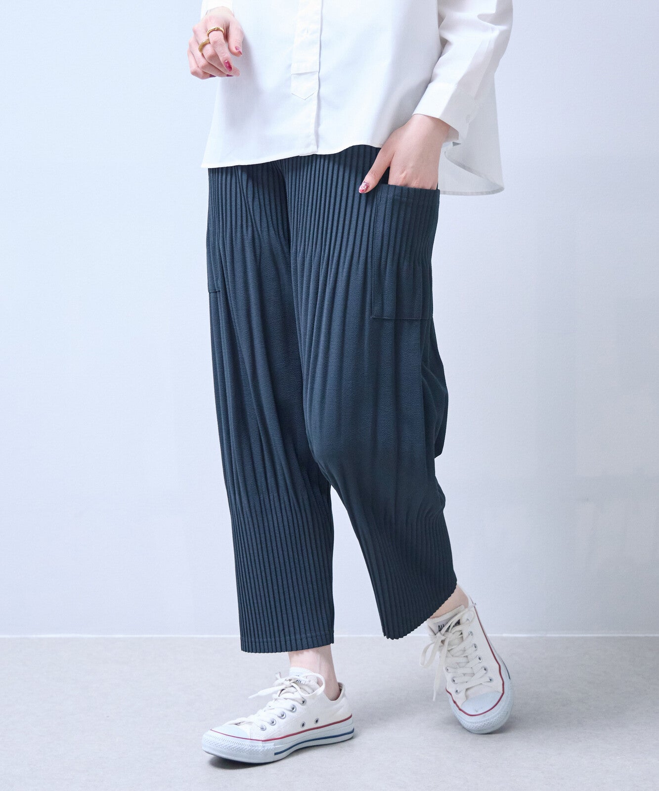 永不過時的經典單品,這款柔軟的褶襉褲非常受歡迎。