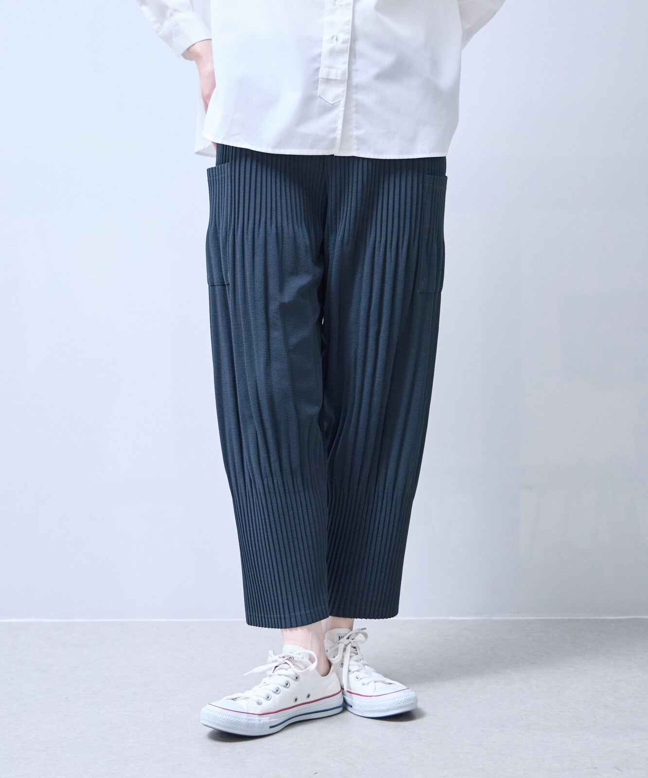 柔軟褶襉寬鬆七分褲