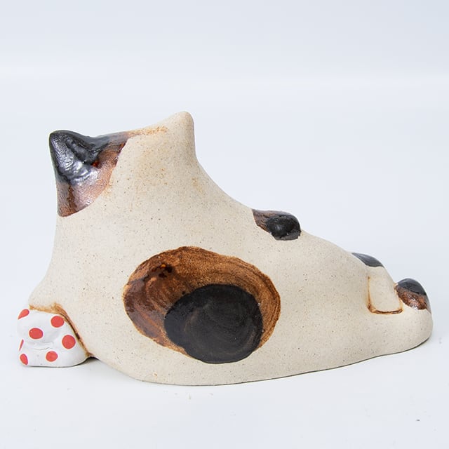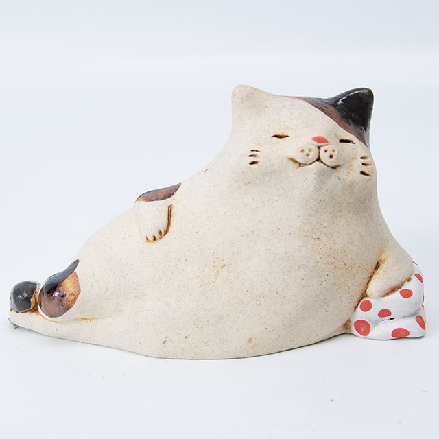 陶藝家 布施 猫 喜歡以貓為製作人形中心,製作出具有自己特色的日本緣起物。 每一只作品的樣子都充滿反差感,有一點奸,卻散發出一種可愛。
