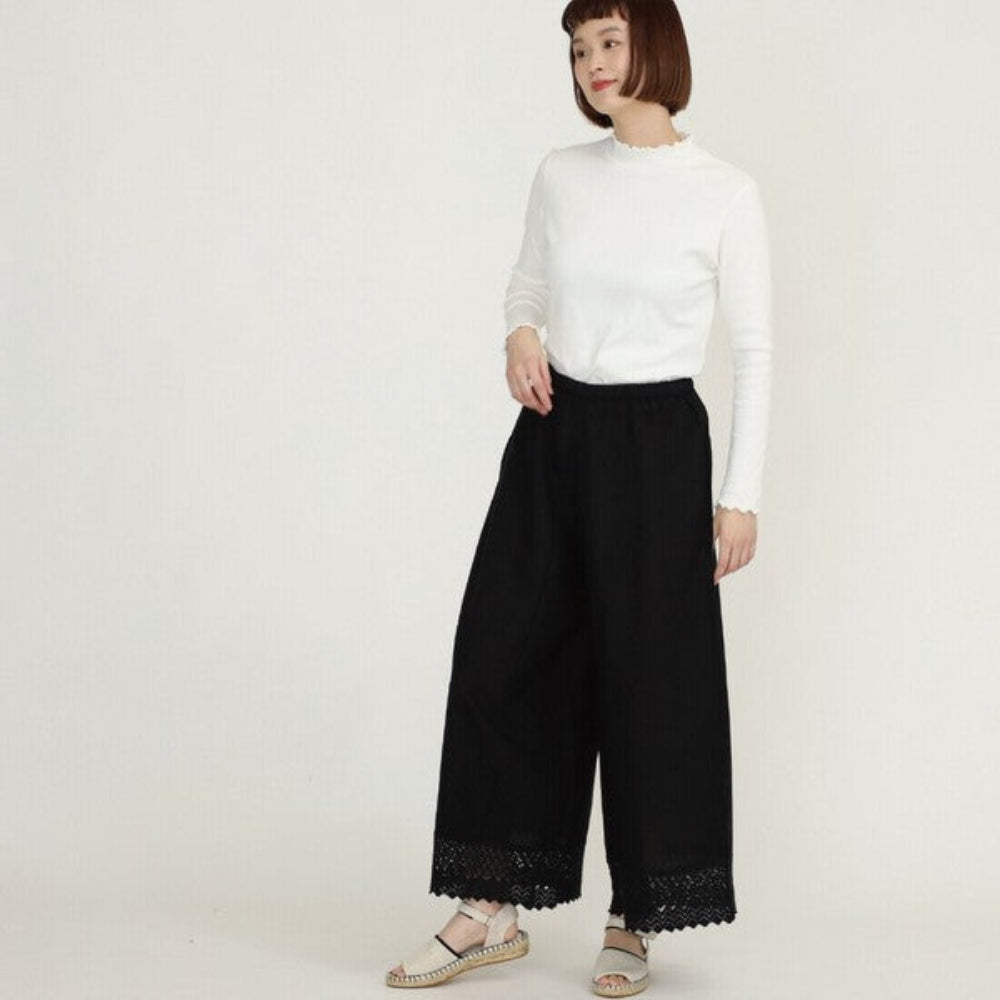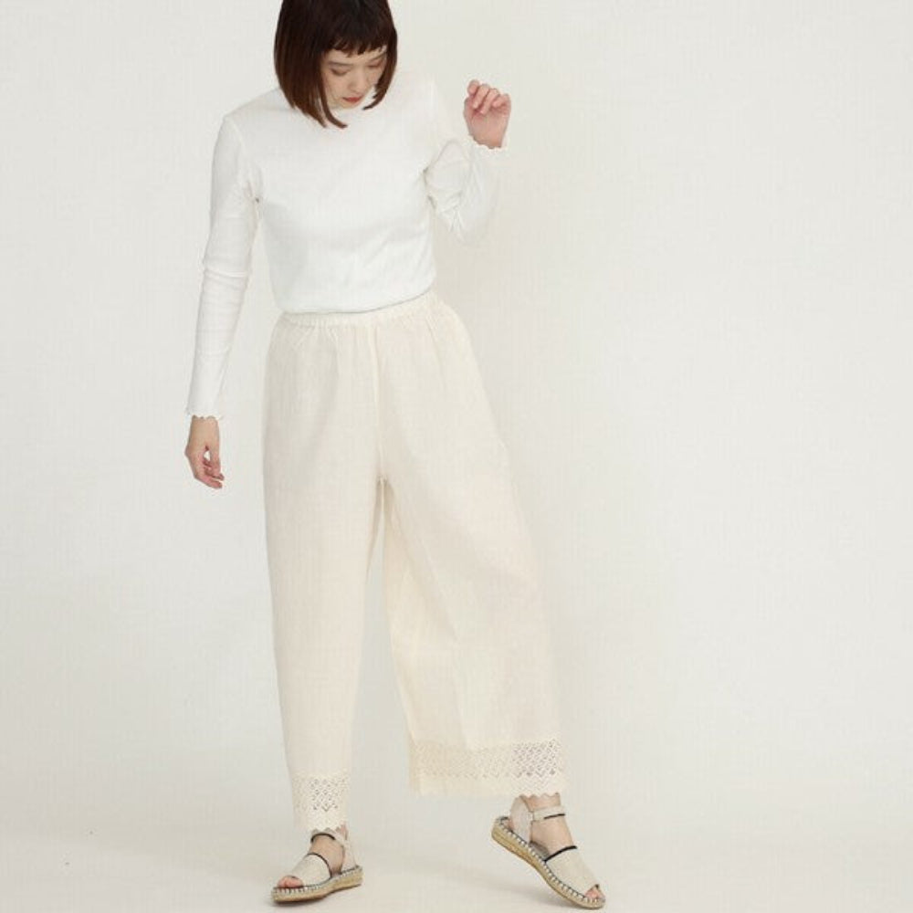 蕾絲下擺闊腳長褲。經典單品,從連身裙或者襯衫下露出,營造出自然、女性化的外觀。